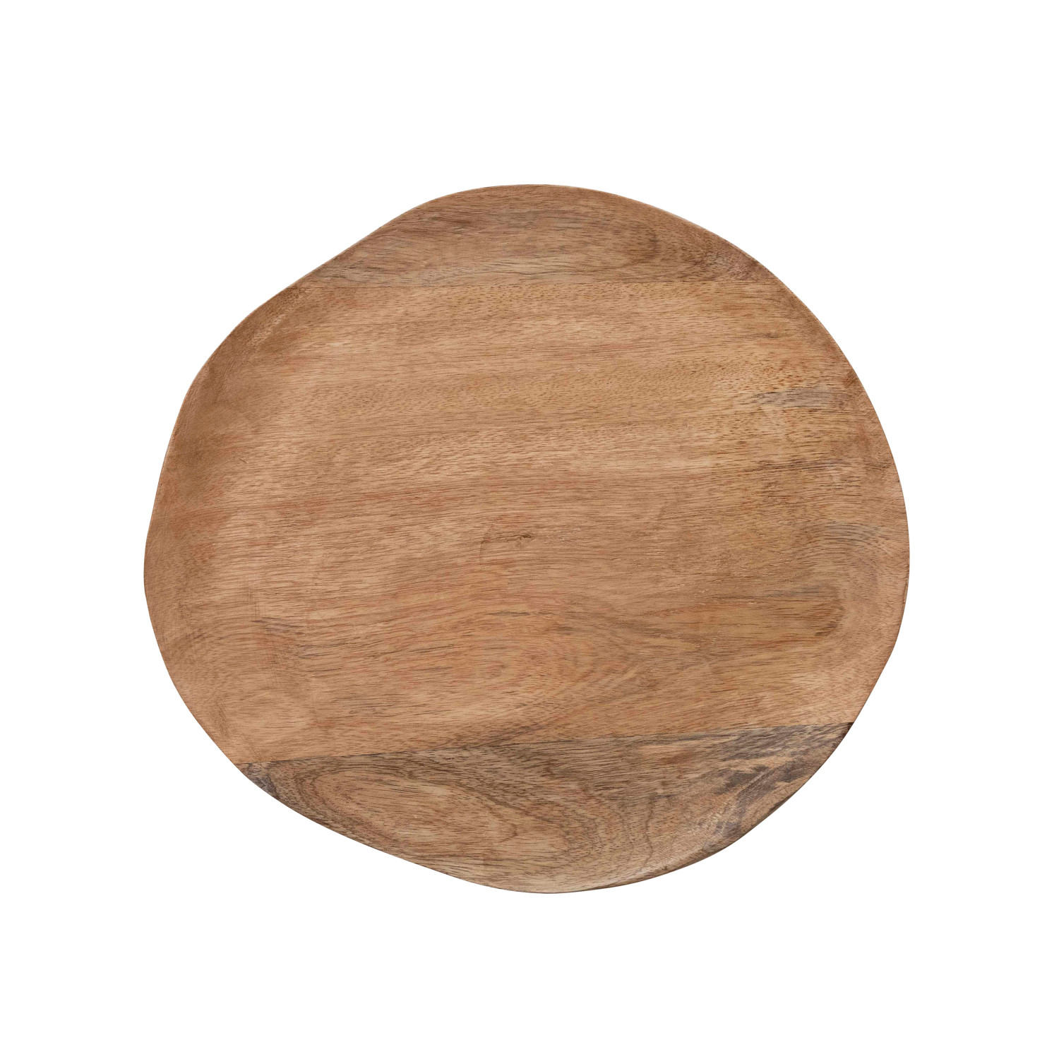 Catalog Name: 13-1/2"L x 13"W Hand-Carved Mango Wood Organic Shaped Platter, Natural