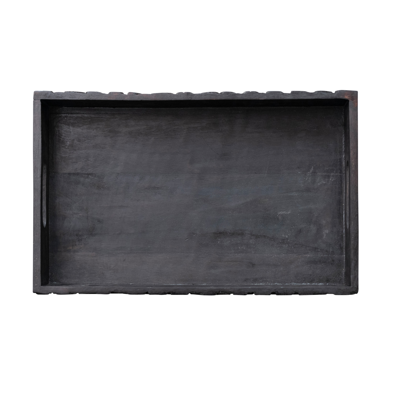 Hand-Carved Mango Wood Tray with Leaves & Handles, Espresso Finish