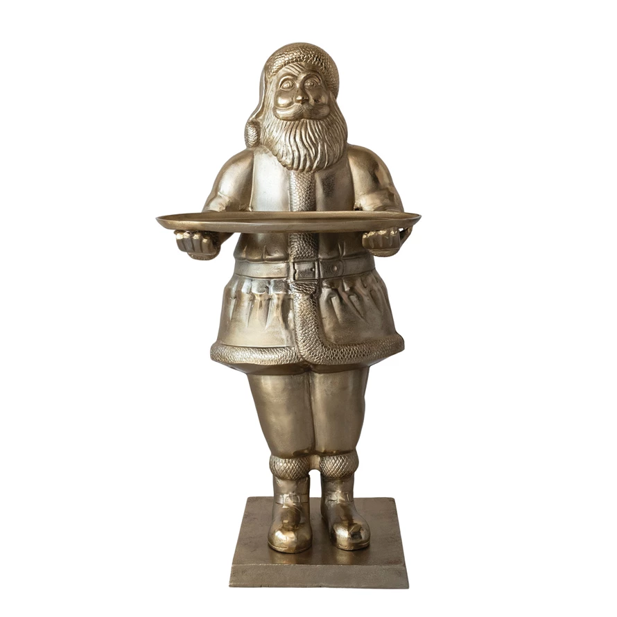Cast Aluminum Santa Holding Tray, Gold Finish