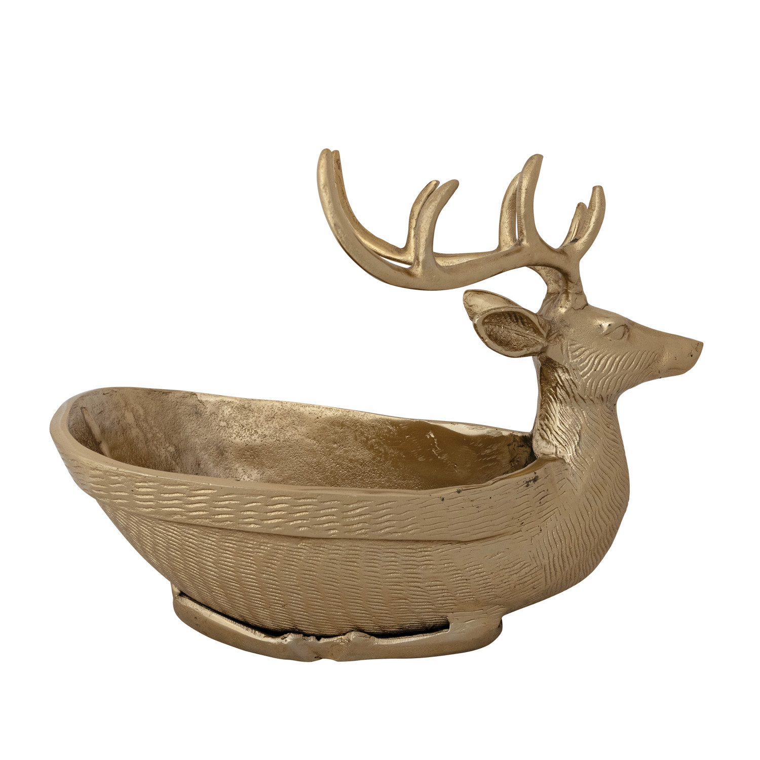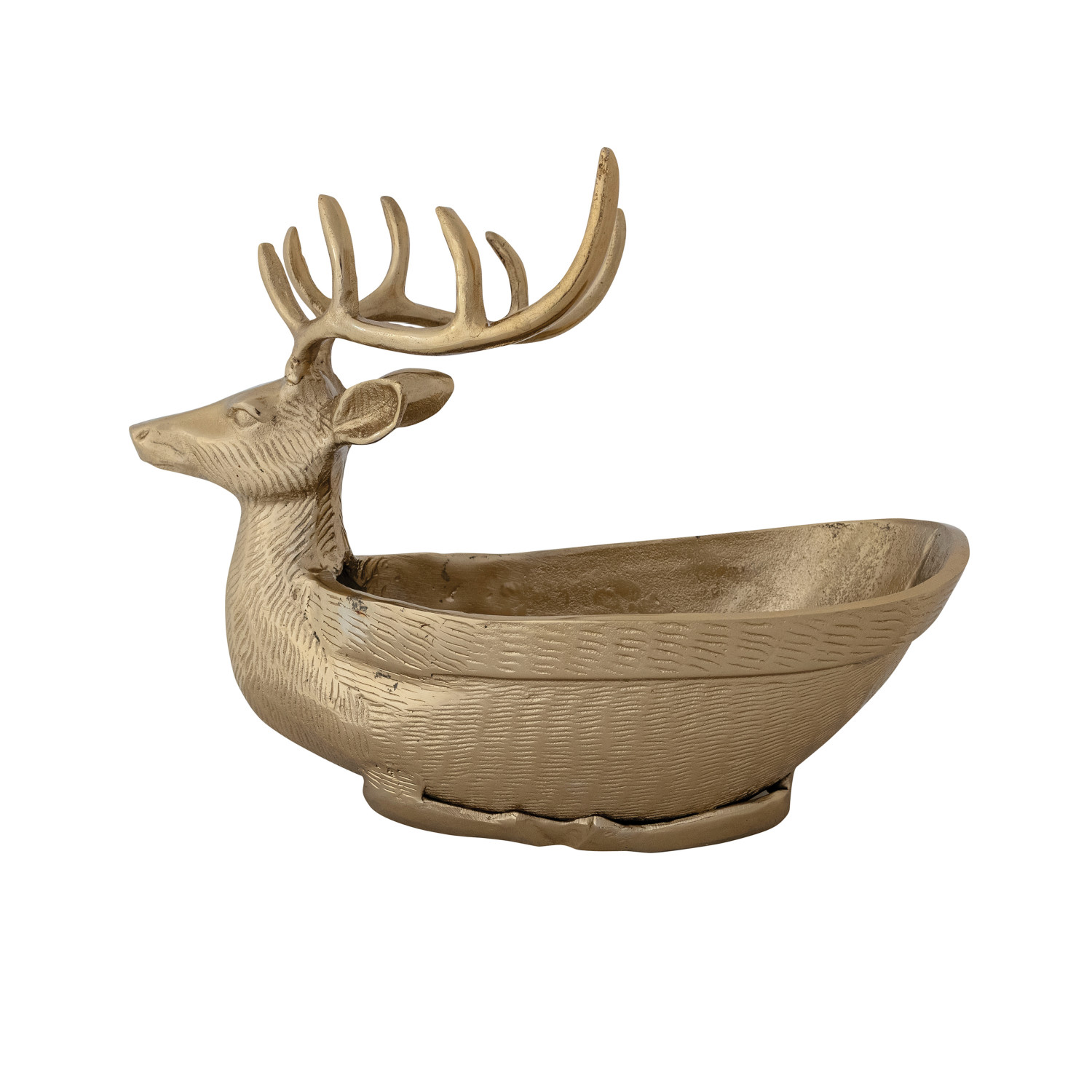 Cast Aluminum Reindeer Shaped Bowl/Bottle Holder, Gold Finish