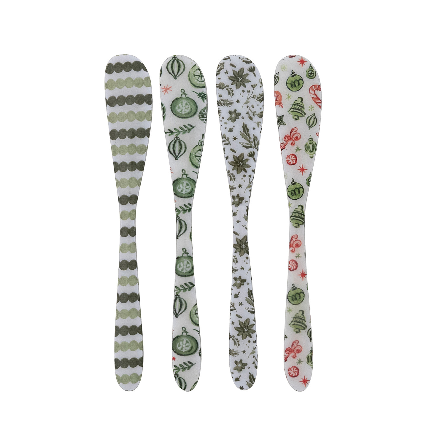 Catalog Name: 5-3/4"L Enameled Stainless Steel Canape Knife w/ Holiday Pattern, Multi Color, 4 Styles ©