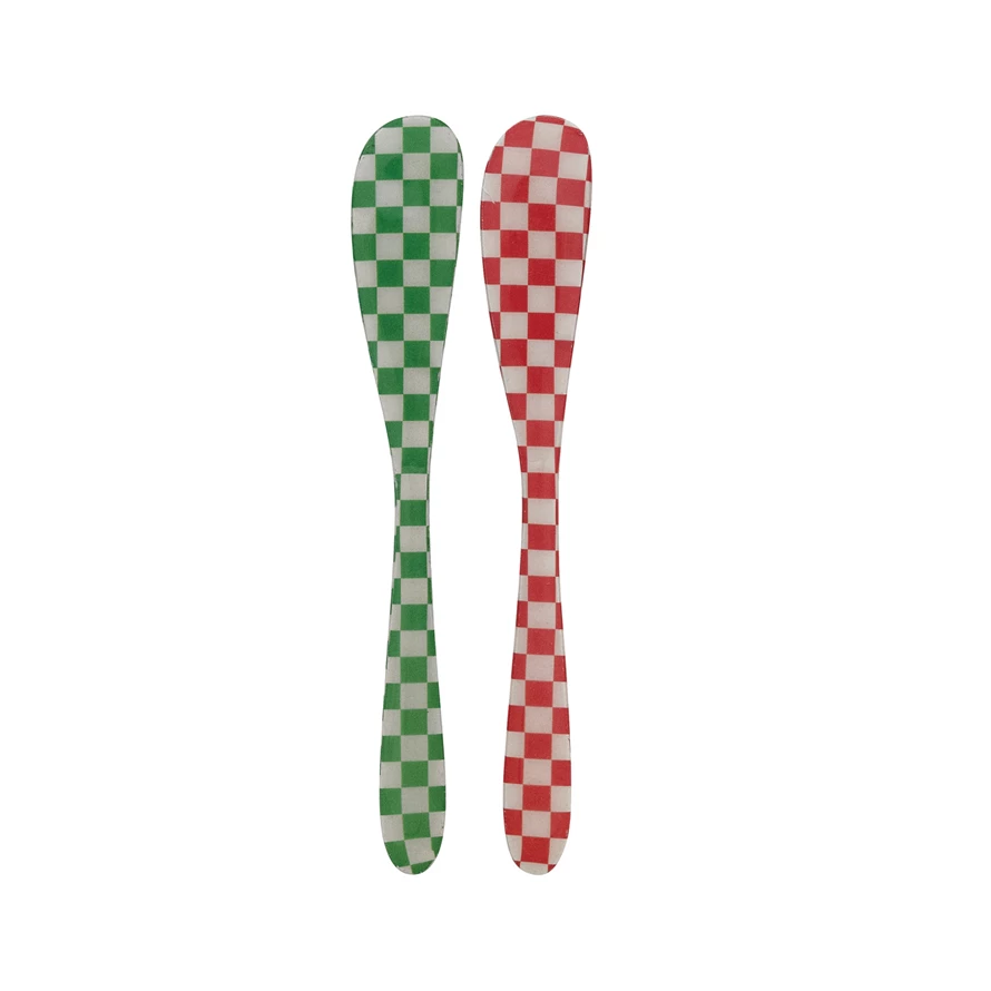 Enameled Stainless Steel Canape Knife with Check Pattern, 2 Colors