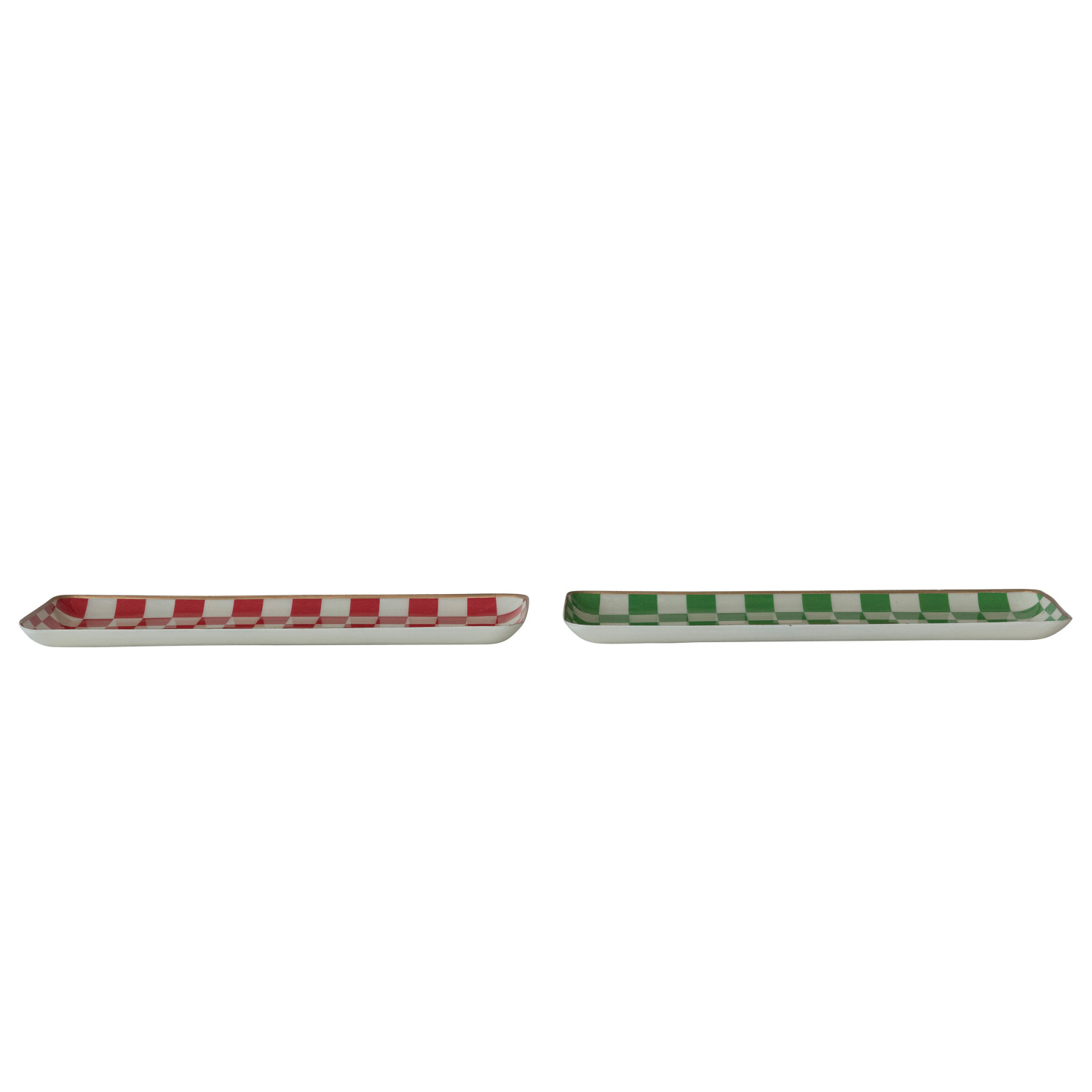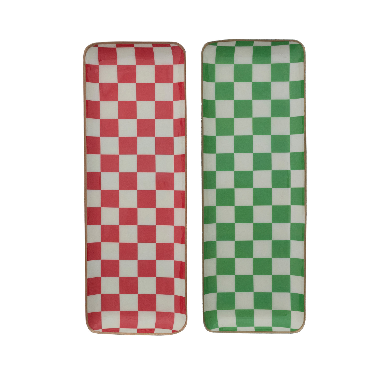Catalog Name: 13"L x 4-1/2"W Enameled Metal Tray w/ Check Pattern & Gold Edges, 2 Colors