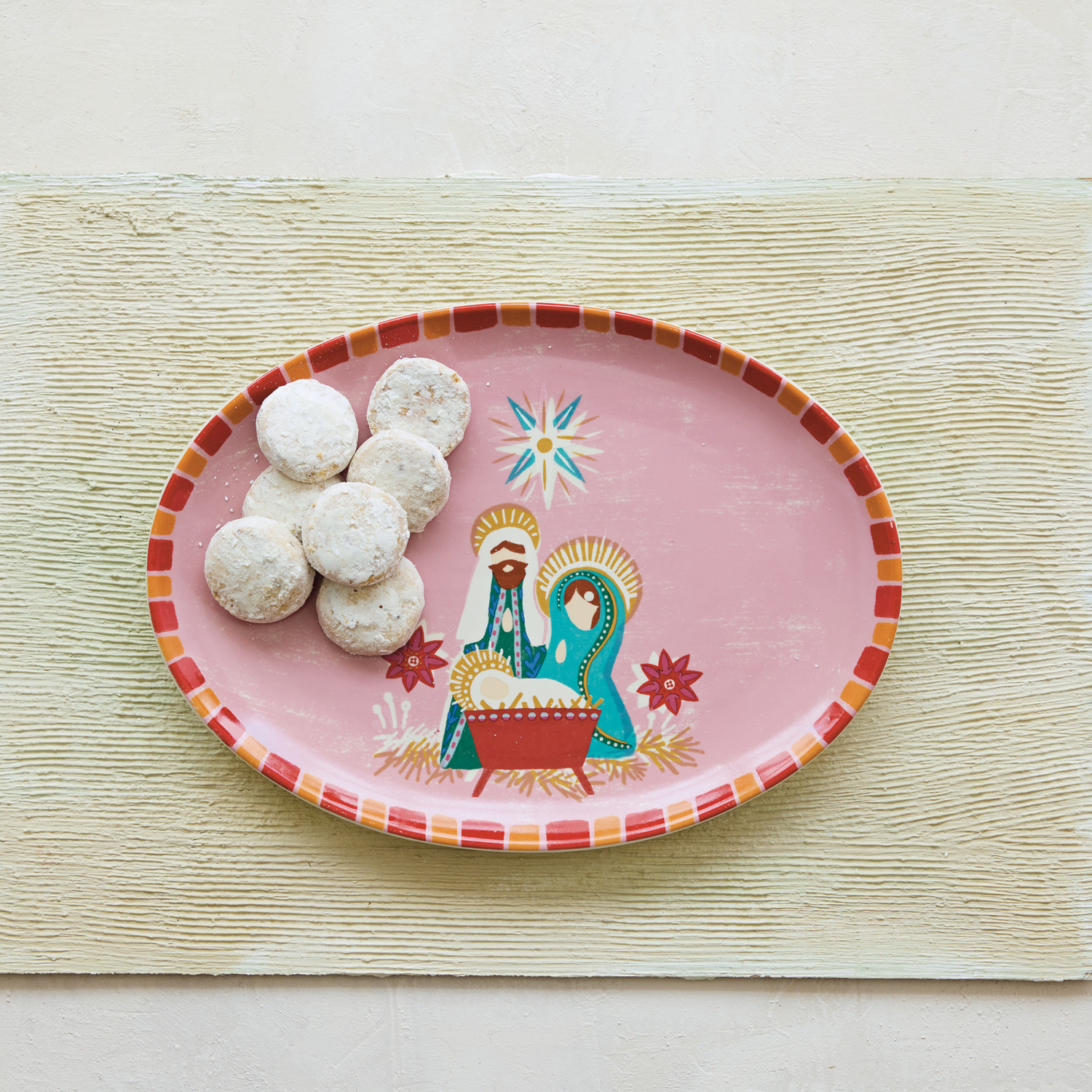Stoneware Platter with Holy Family & Striped Border ©