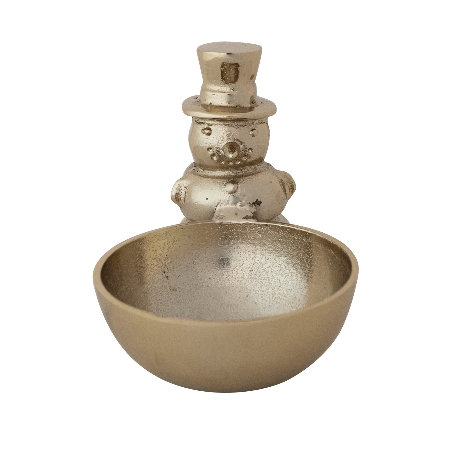 Cast Aluminum Snowman Holding Bowl, Gold Finish