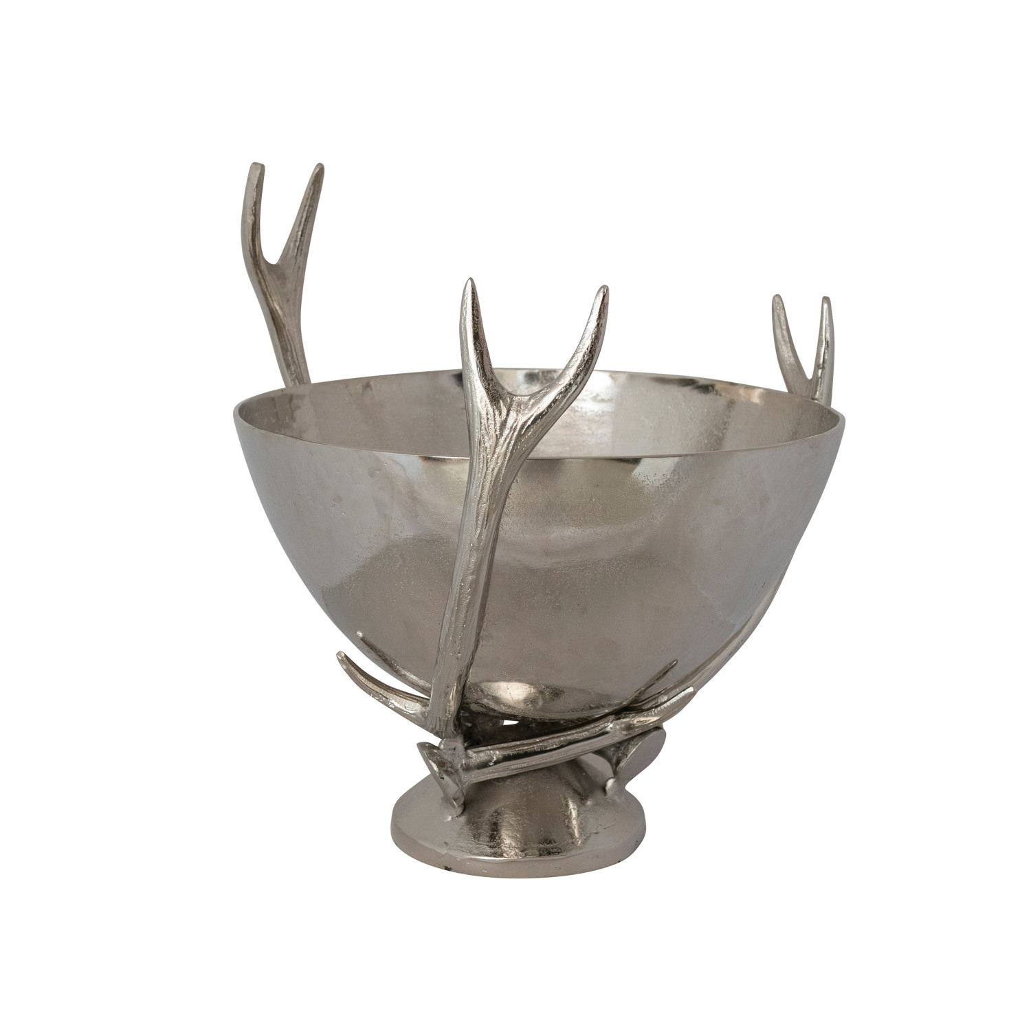 Catalog Name: 17" Round x 17-1/2"H Cast Aluminum Antler Shaped Stand w/ Removable Bowl, Nickel Finish, Set of 2