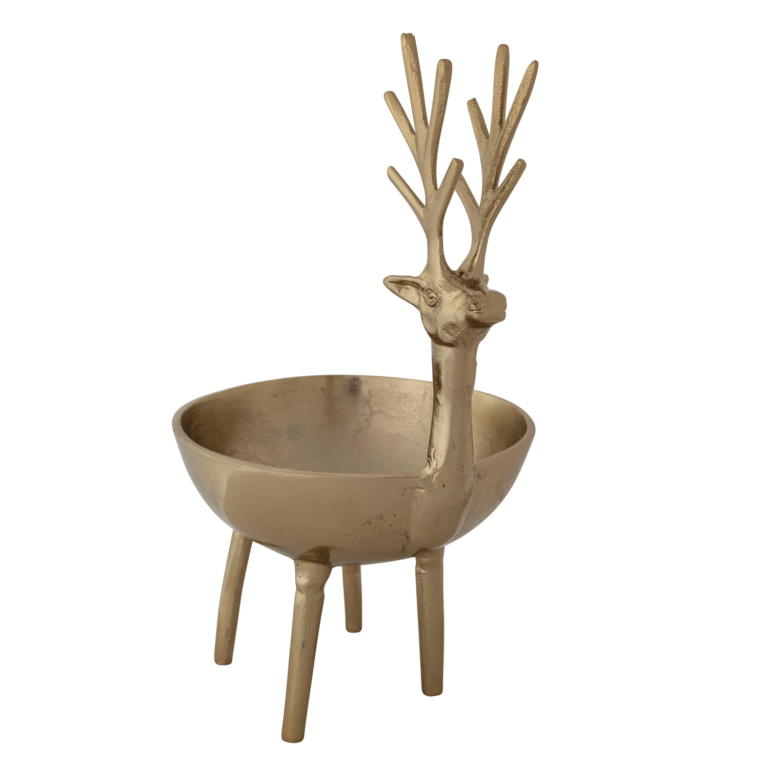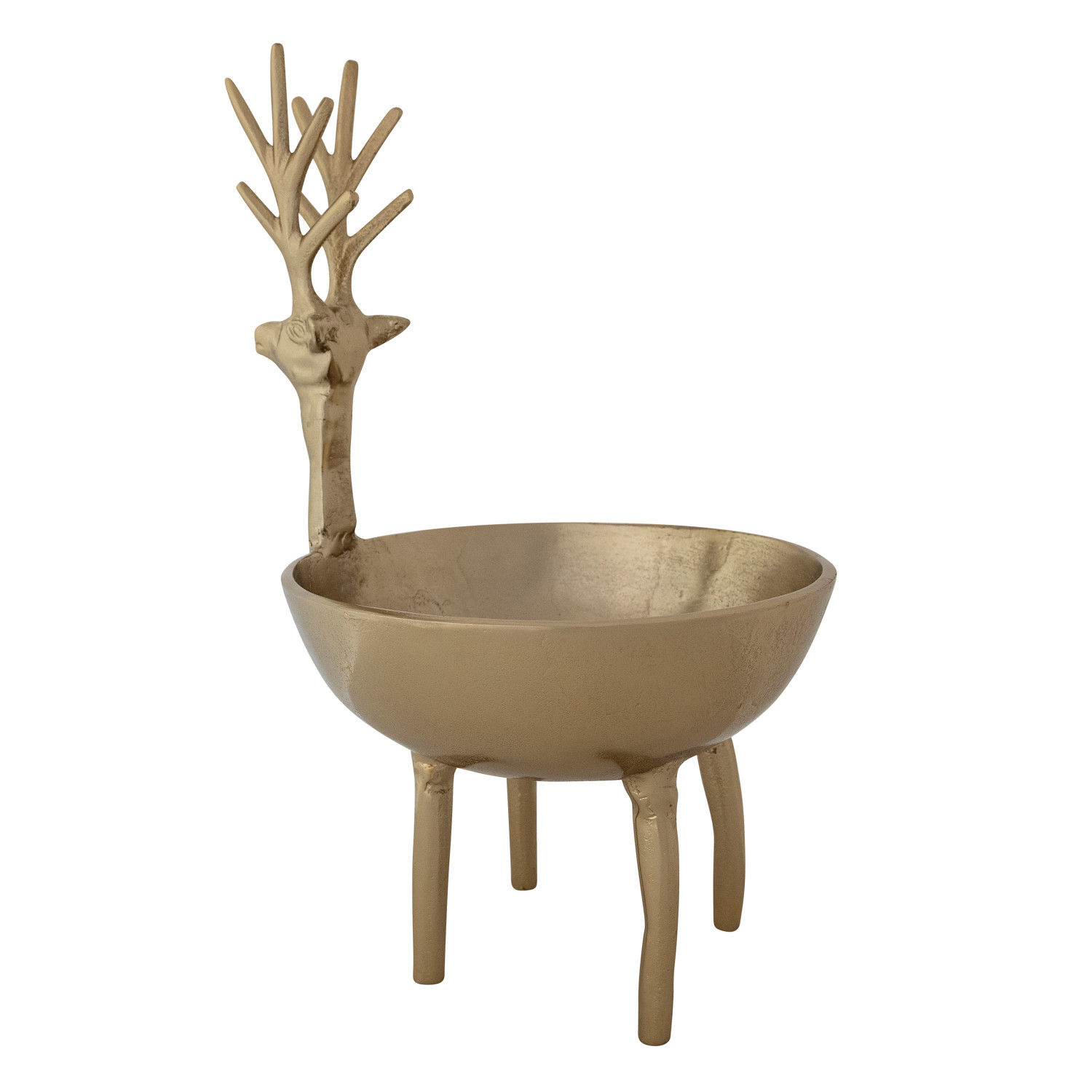 Catalog Name: 12-3/4"L x 9-3/4"W x 16-3/4"H Cast Aluminum Deer Shaped Bowl, Gold Finish