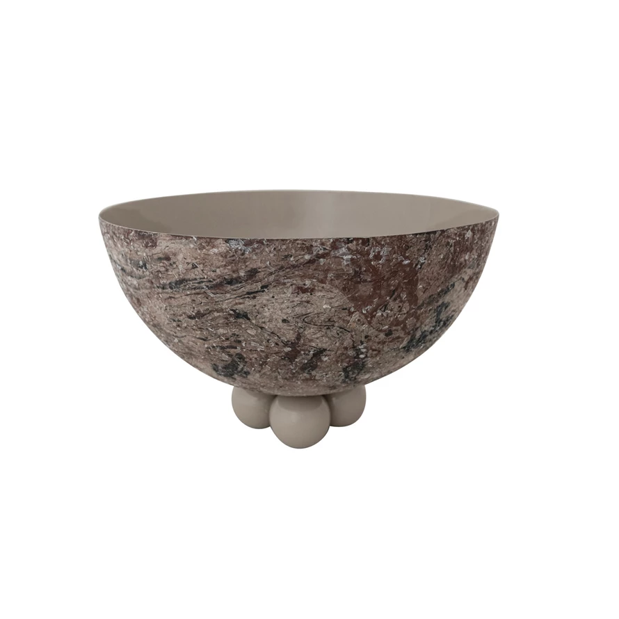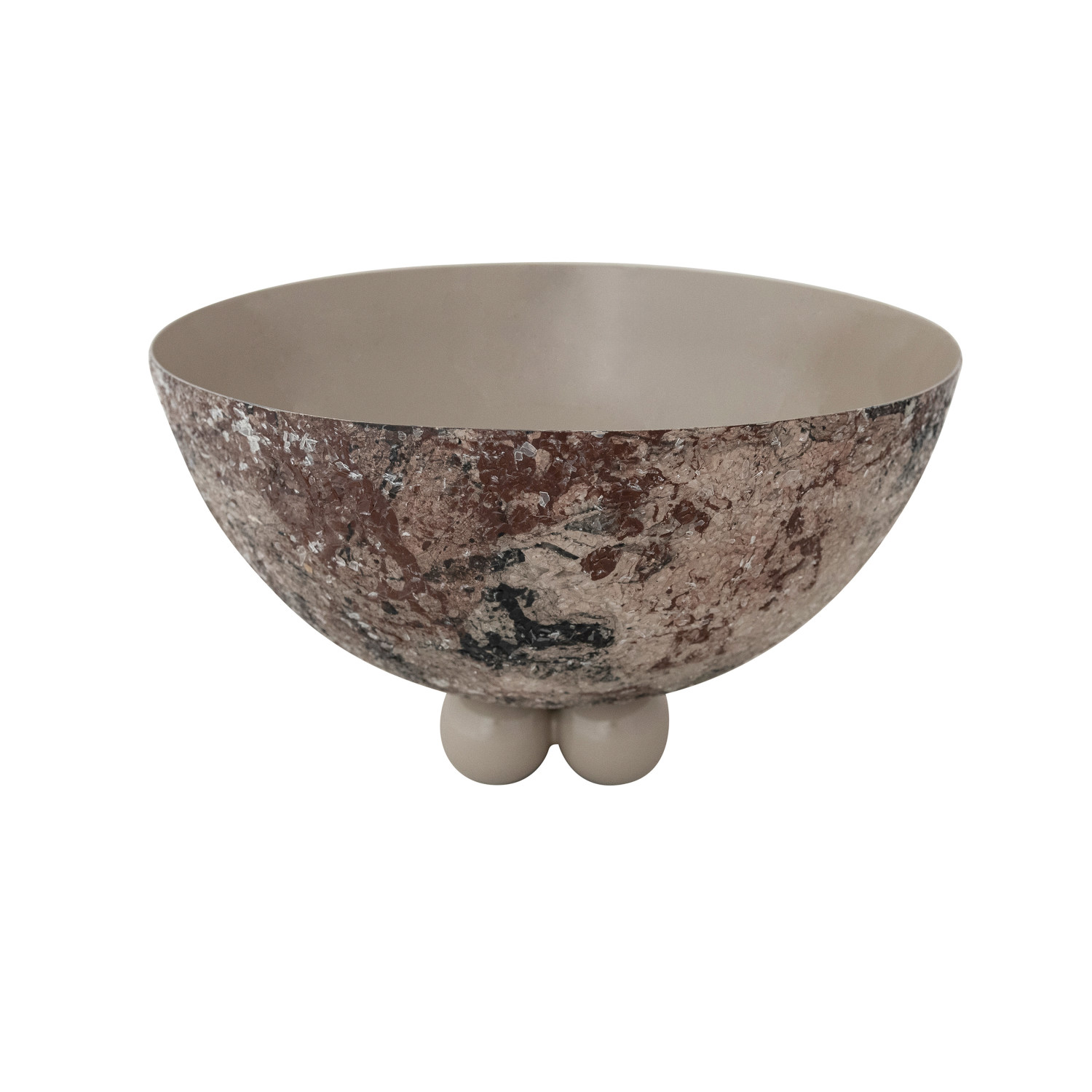 Catalog Name: 12" Round x 7-1/2"H Enameled Aluminum Bowl w/ Mica Flakes & Ball Feet, Marbled Multi Color