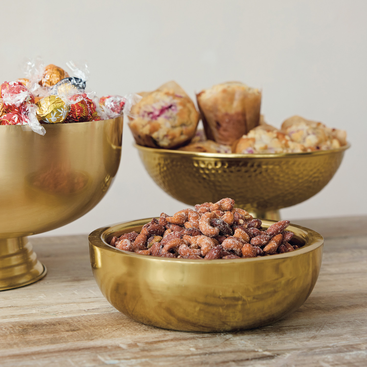 Hammered Metal Footed Bowl, Gold Finish