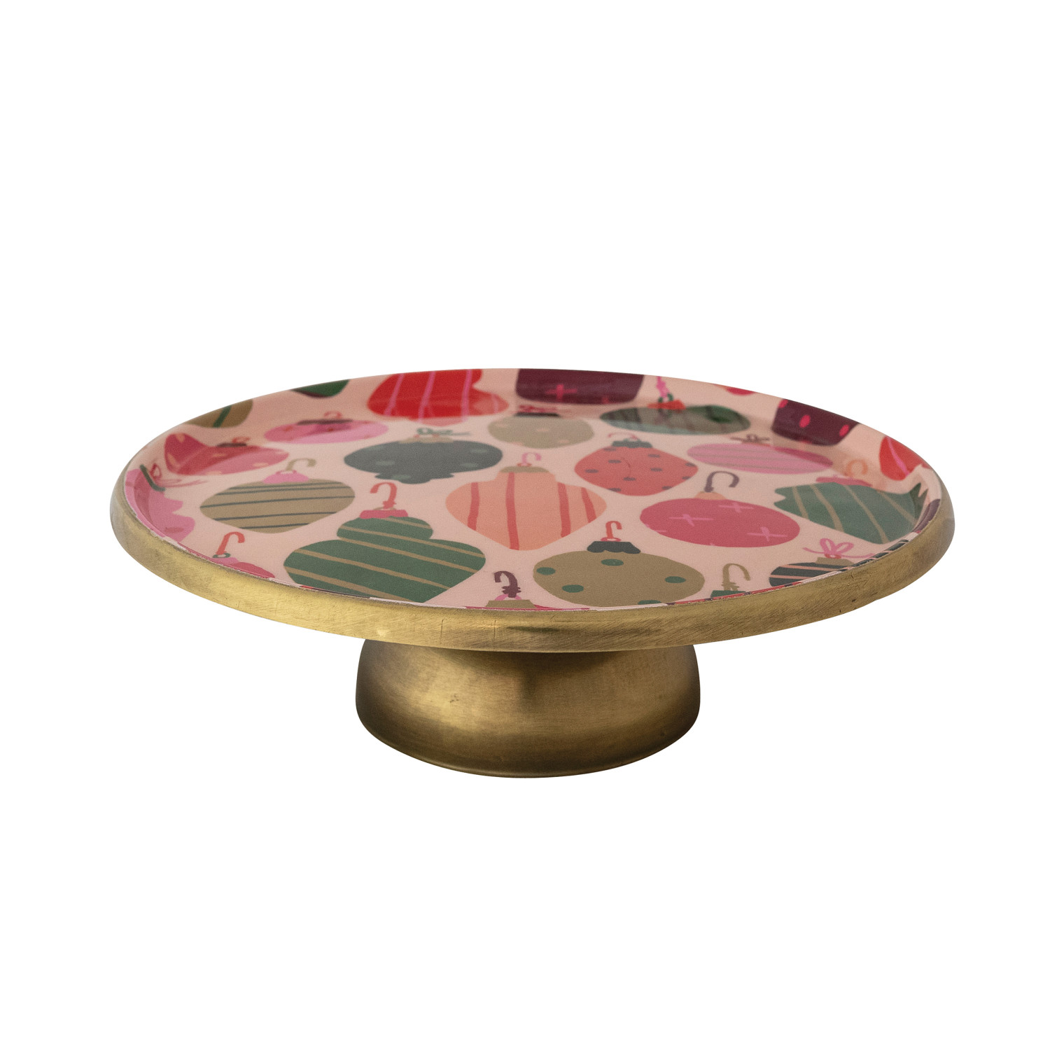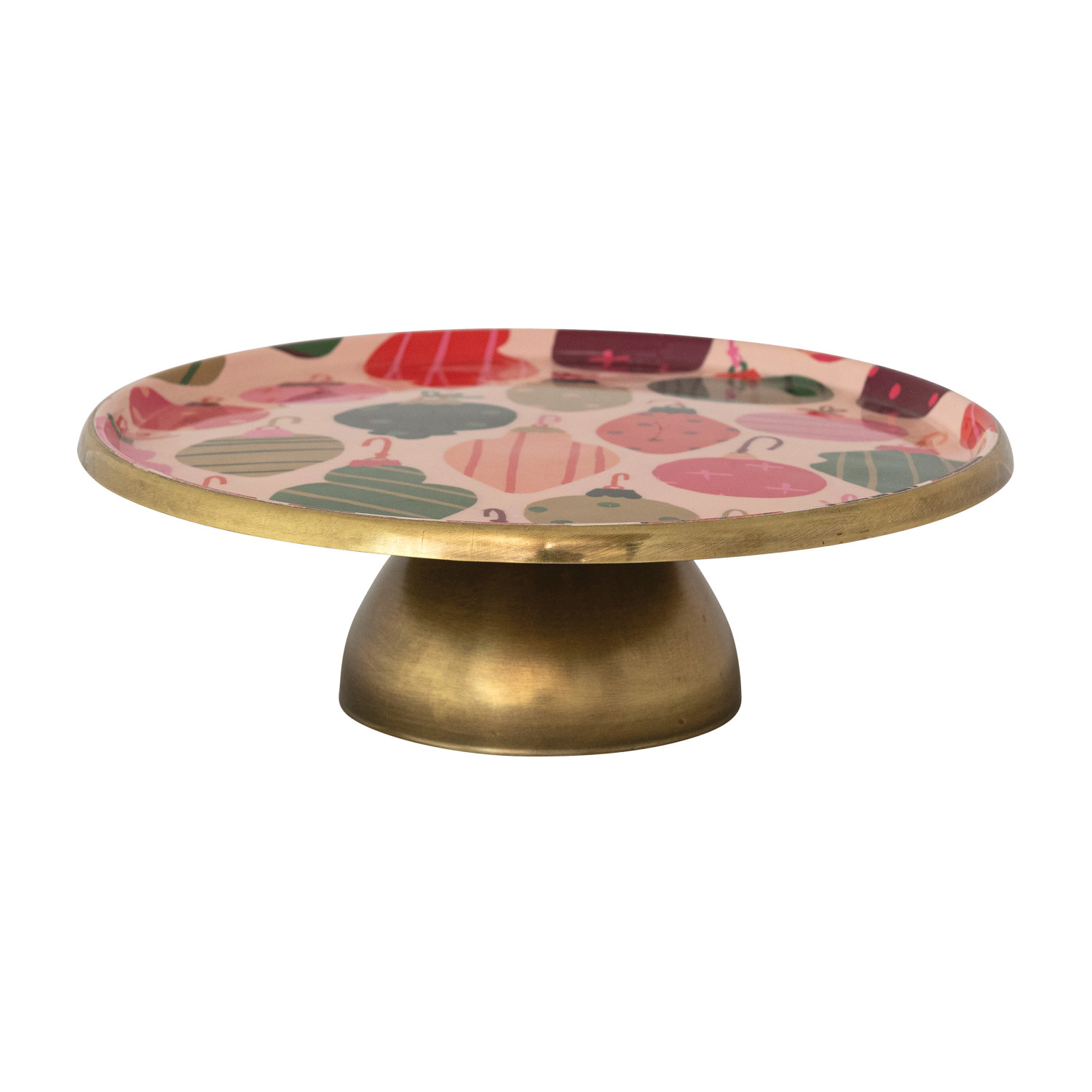 Catalog Name: 11" Round x 3-1/2"H Enameled Metal Pedestal w/ Ornaments Pattern, Multi Color & Gold Finish ©