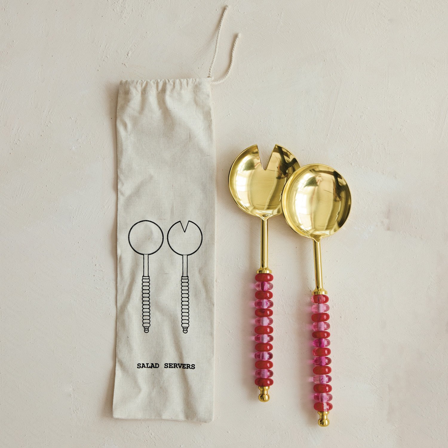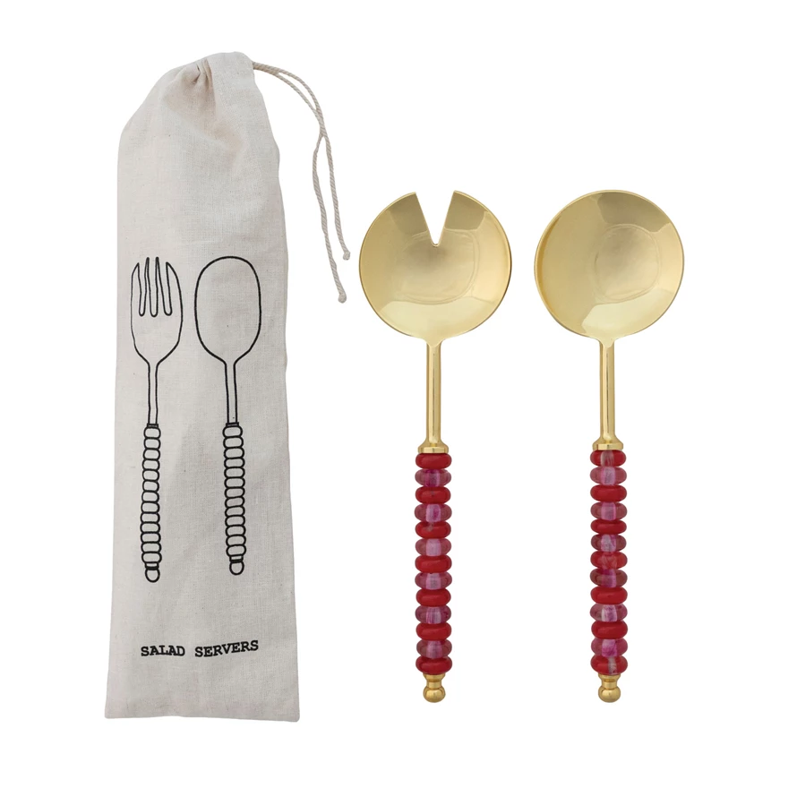 Stainless Steel Salad Servers with Resin Handles, Set of 2 in Drawstring Bag