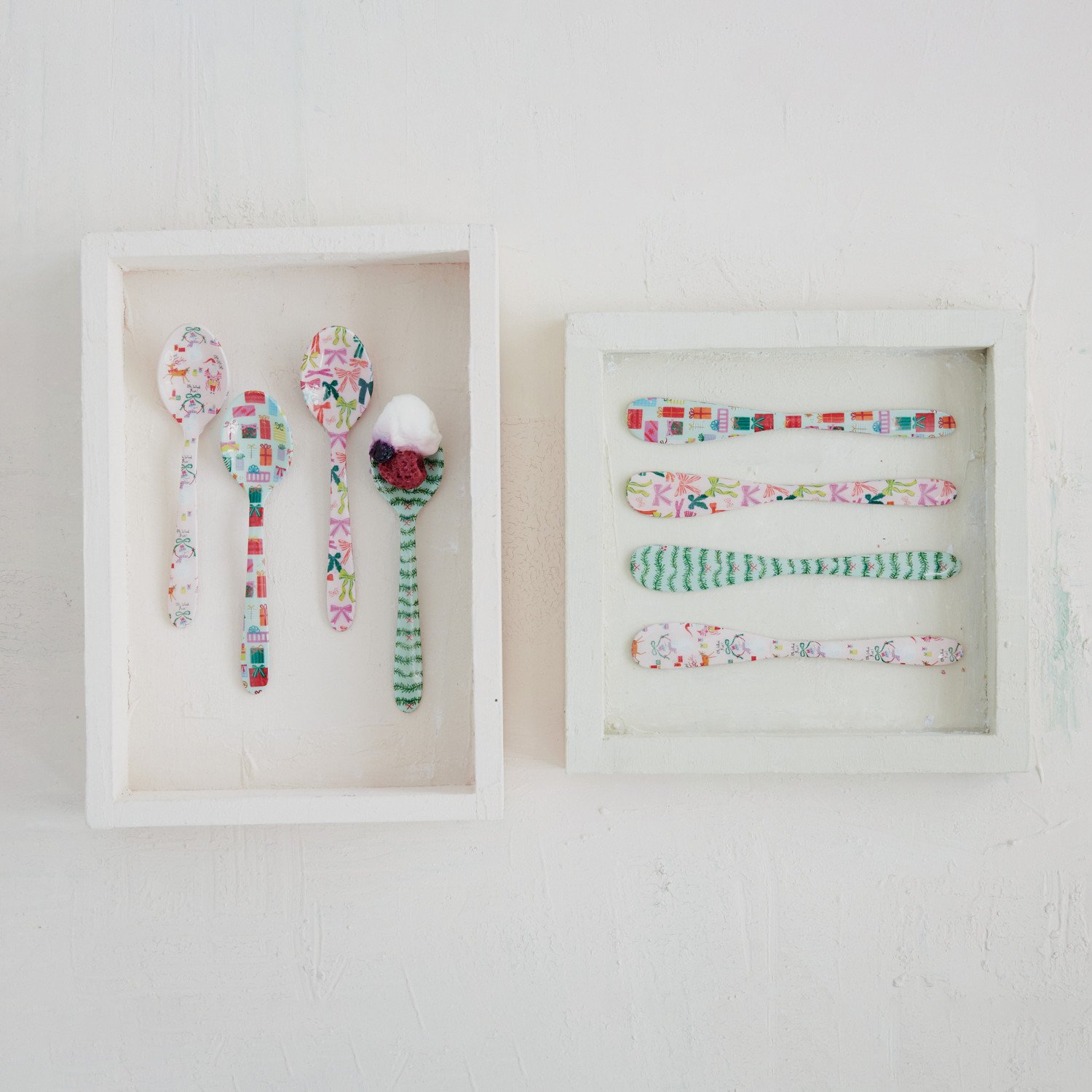 Catalog Name: 5-3/4"L Enameled Stainless Steel Canape Knife w/ Holiday Pattern, Multi Color, 4 Styles ©