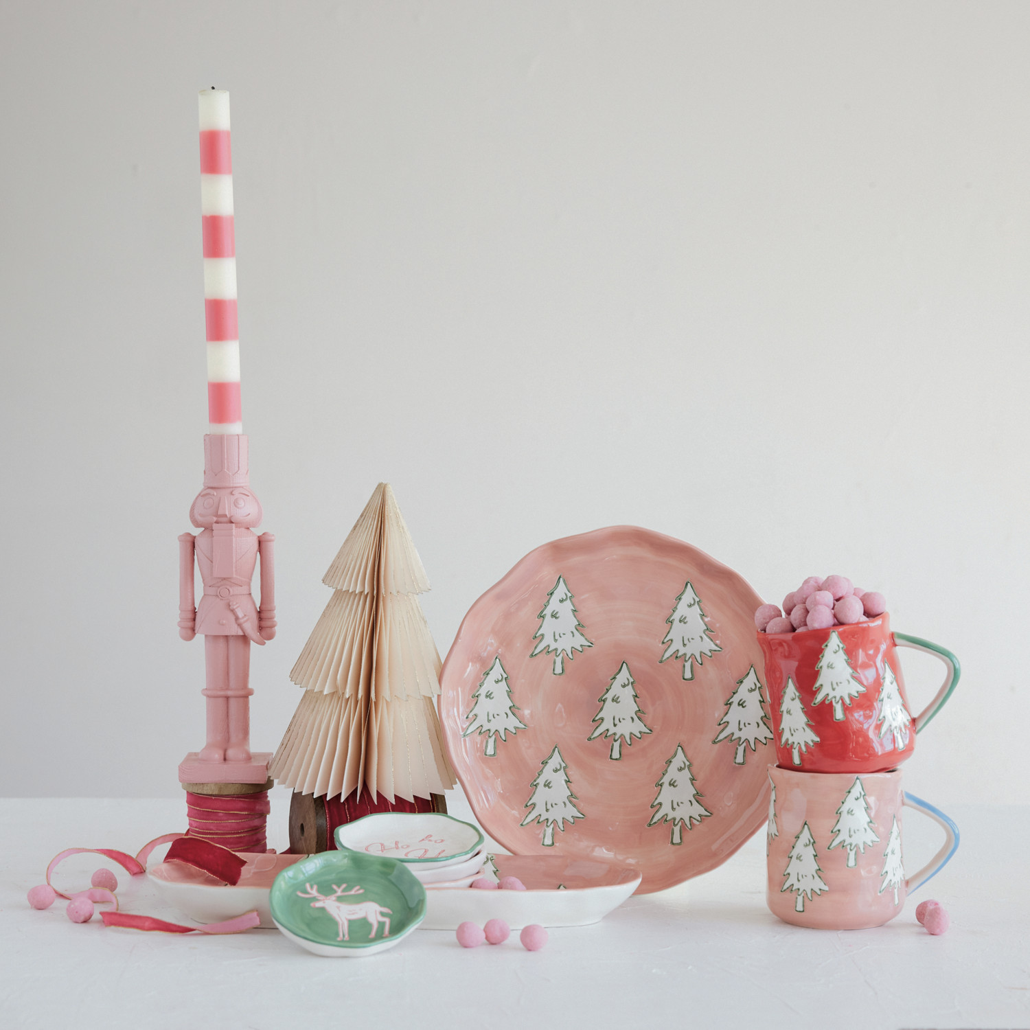 Stoneware Organic Shaped Dish with Wax Relief Holiday Image, 4 Styles