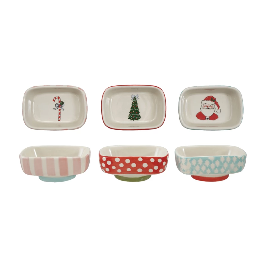 Catalog Name: 3-1/4"L x 2-1/4"W Stoneware Footed Dish w/ Holiday Image Inside, Multi Color, 3 Styles ©