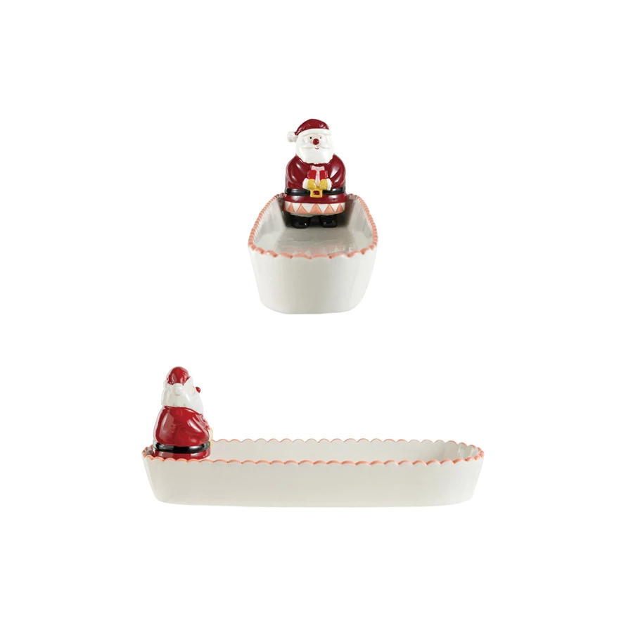 Ceramic Scalloped Cracker Dish with 3D Santa, Red, White & Black ©
