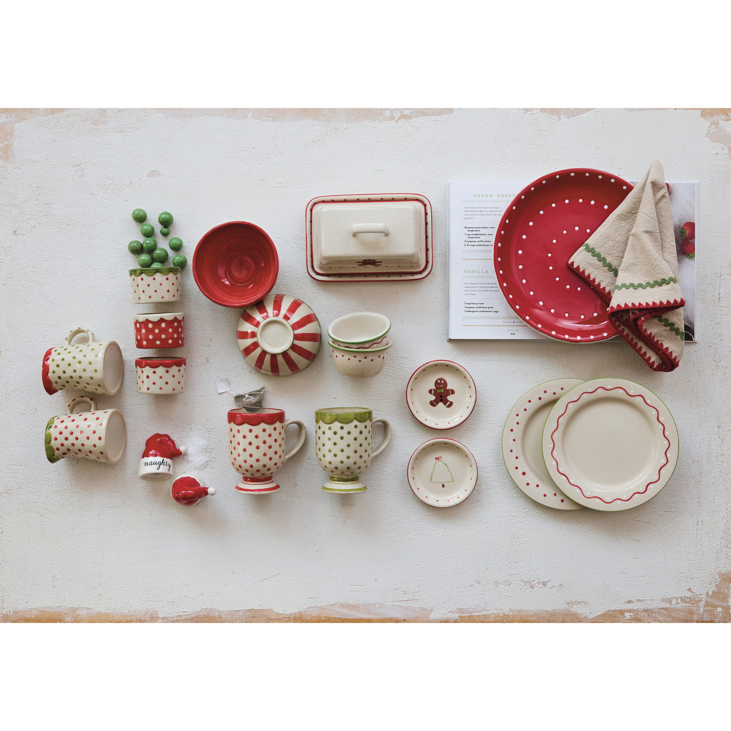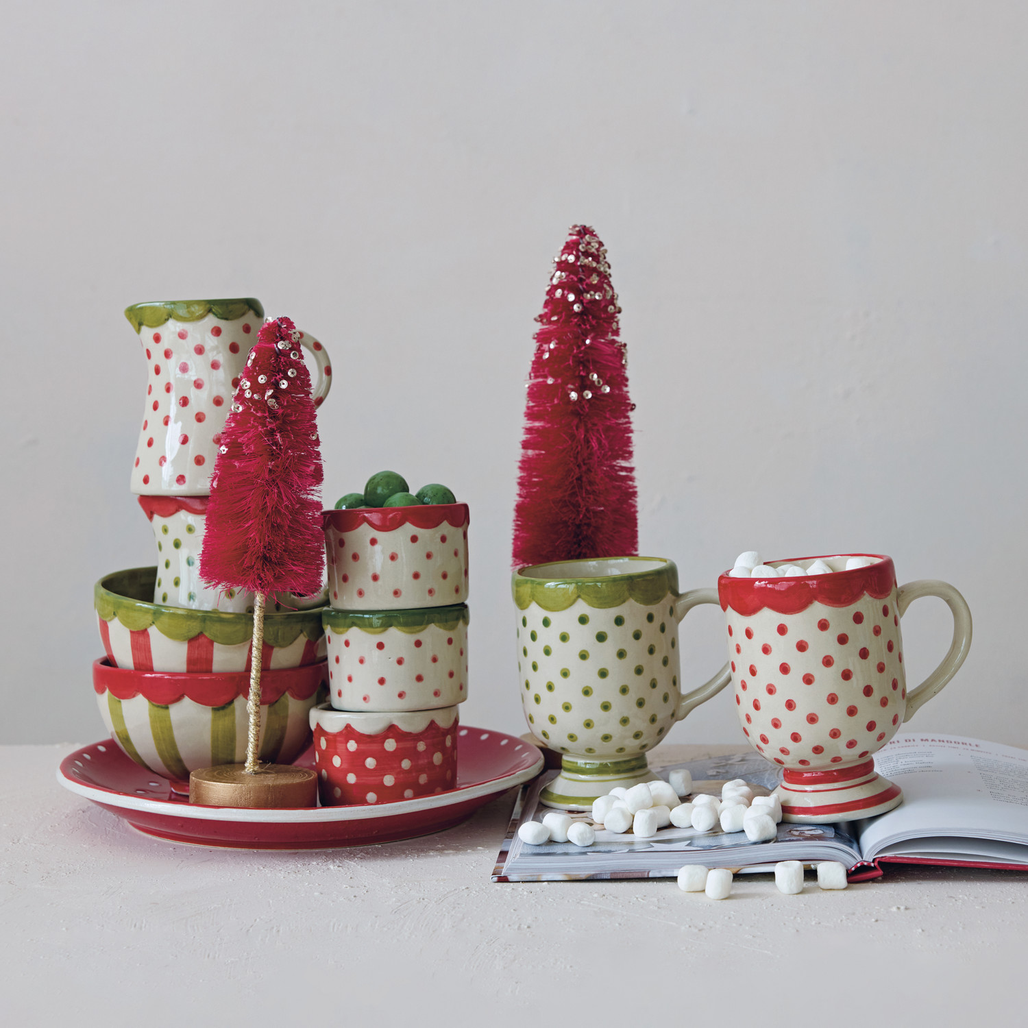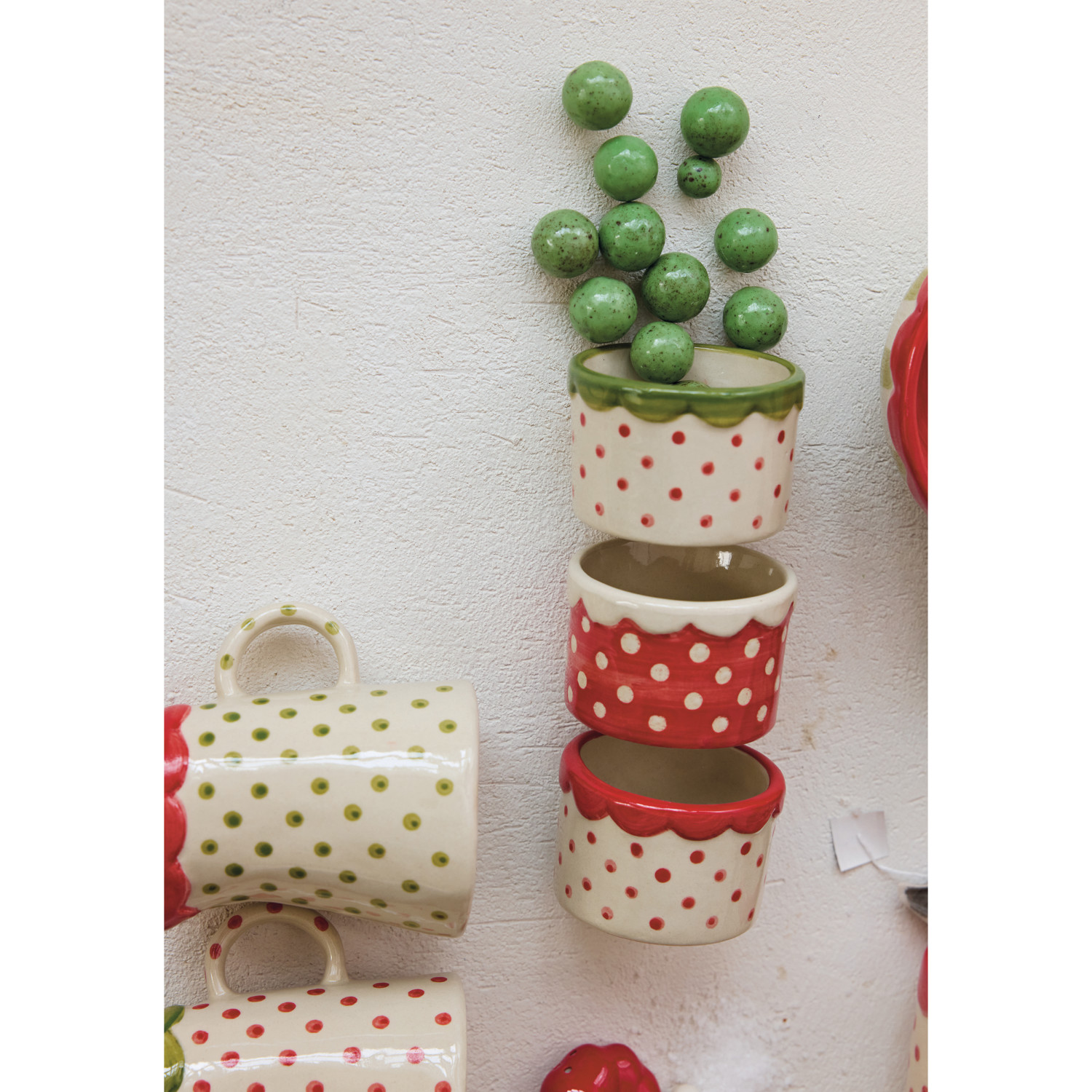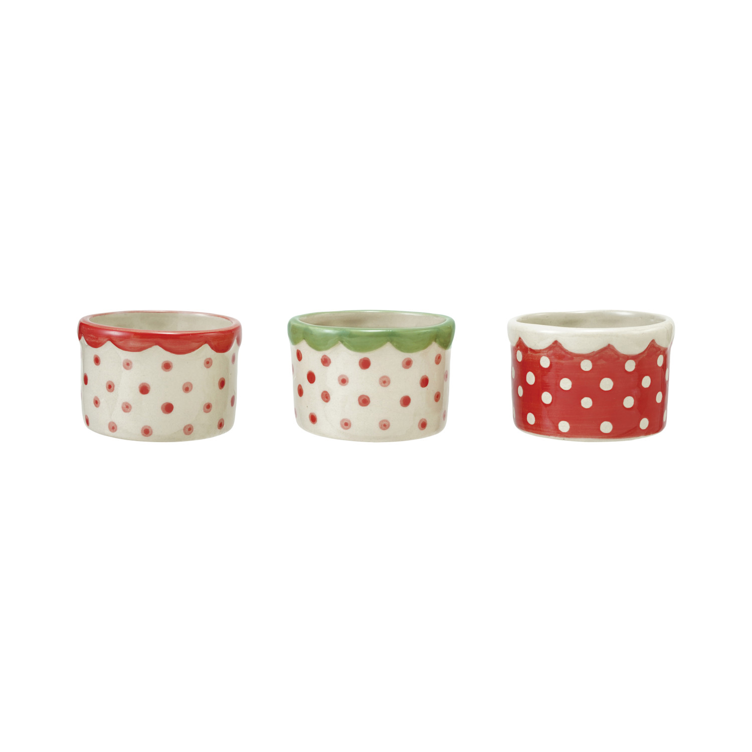 Hand-Painted Stoneware Container with Polka Dots & Scalloped Rim, 3 Colors