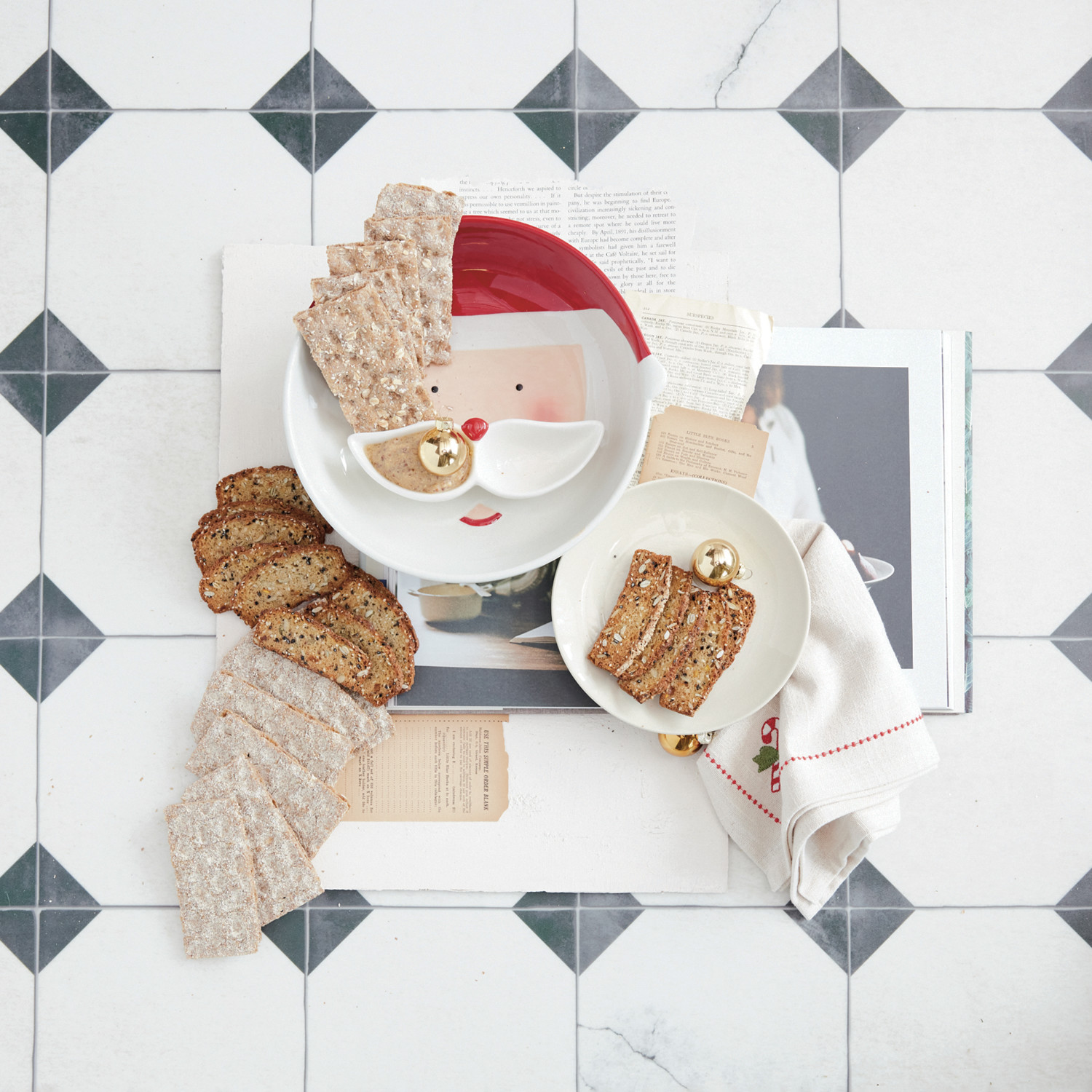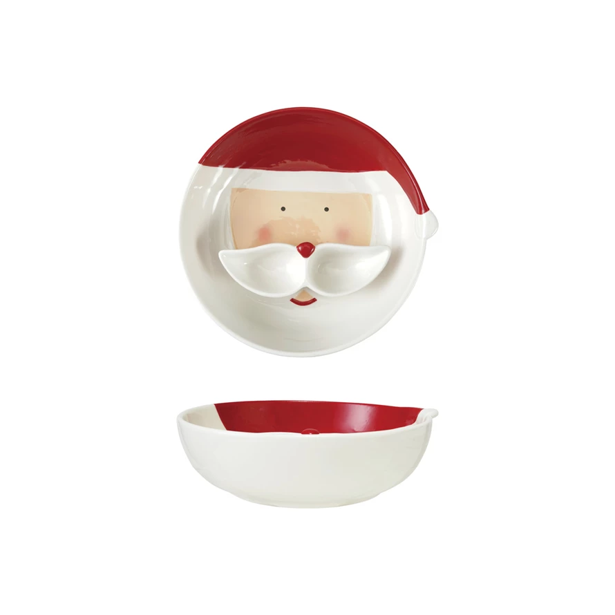 Hand-Painted Ceramic Santa Head Shaped Bowl & Mustache Dish with 2 Sections, Set of 2