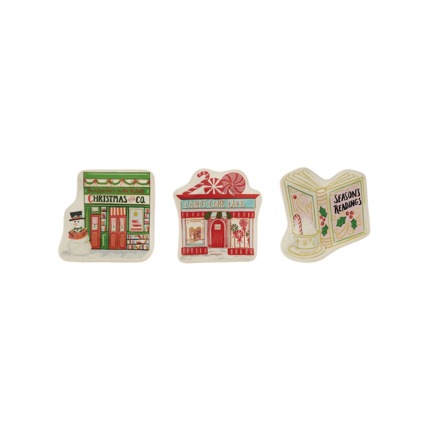 Catalog Name: 4"L x 4"W Stoneware Shaped Dish w/ Book/Holiday Shop, Multi Color, 3 Styles ©