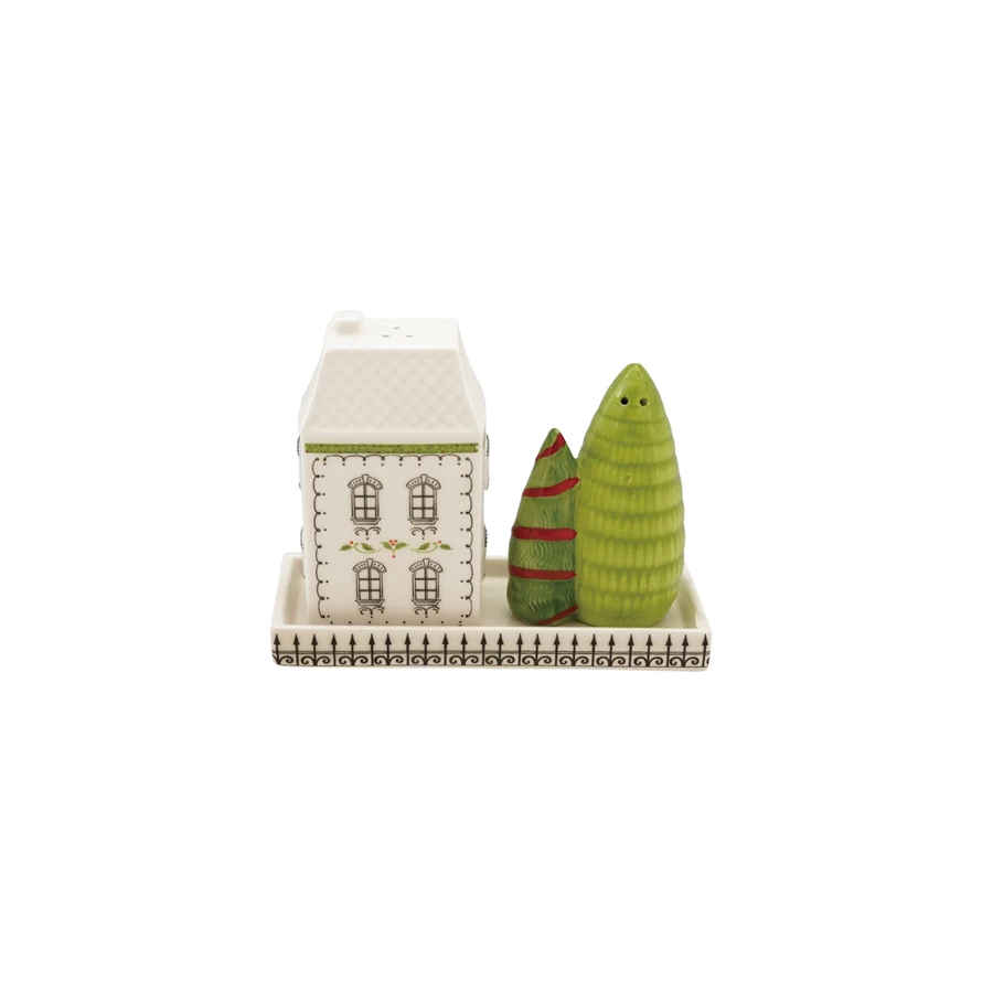 Ceramic House & Trees Shaped Salt & Pepper Shakers with Tray, Set of 3