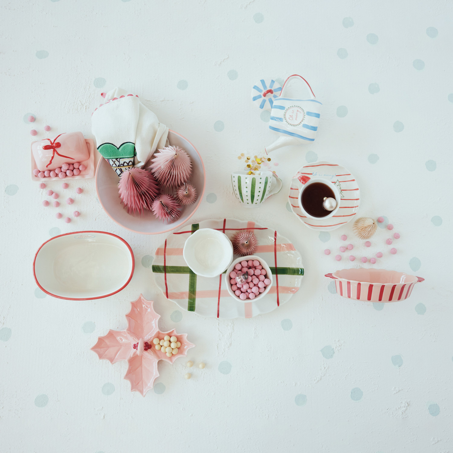 Ceramic Serving Bowl "Ho Ho Ho…", Pink, Red & White