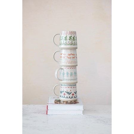 Catalog Name: 6"L x 4"W x 5-1/2"H 10 oz. Hand-Painted Stoneware Tea For One w/ Plaid Pattern, Dog Finial & Strainer, Multi Color, Set of 3 ©