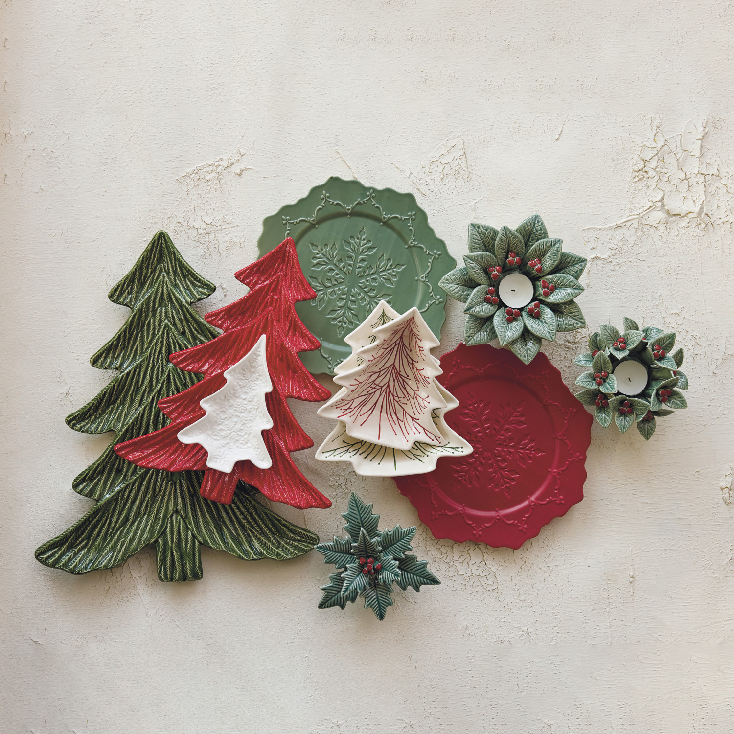 Ceramic Tree Shaped Platter, Green