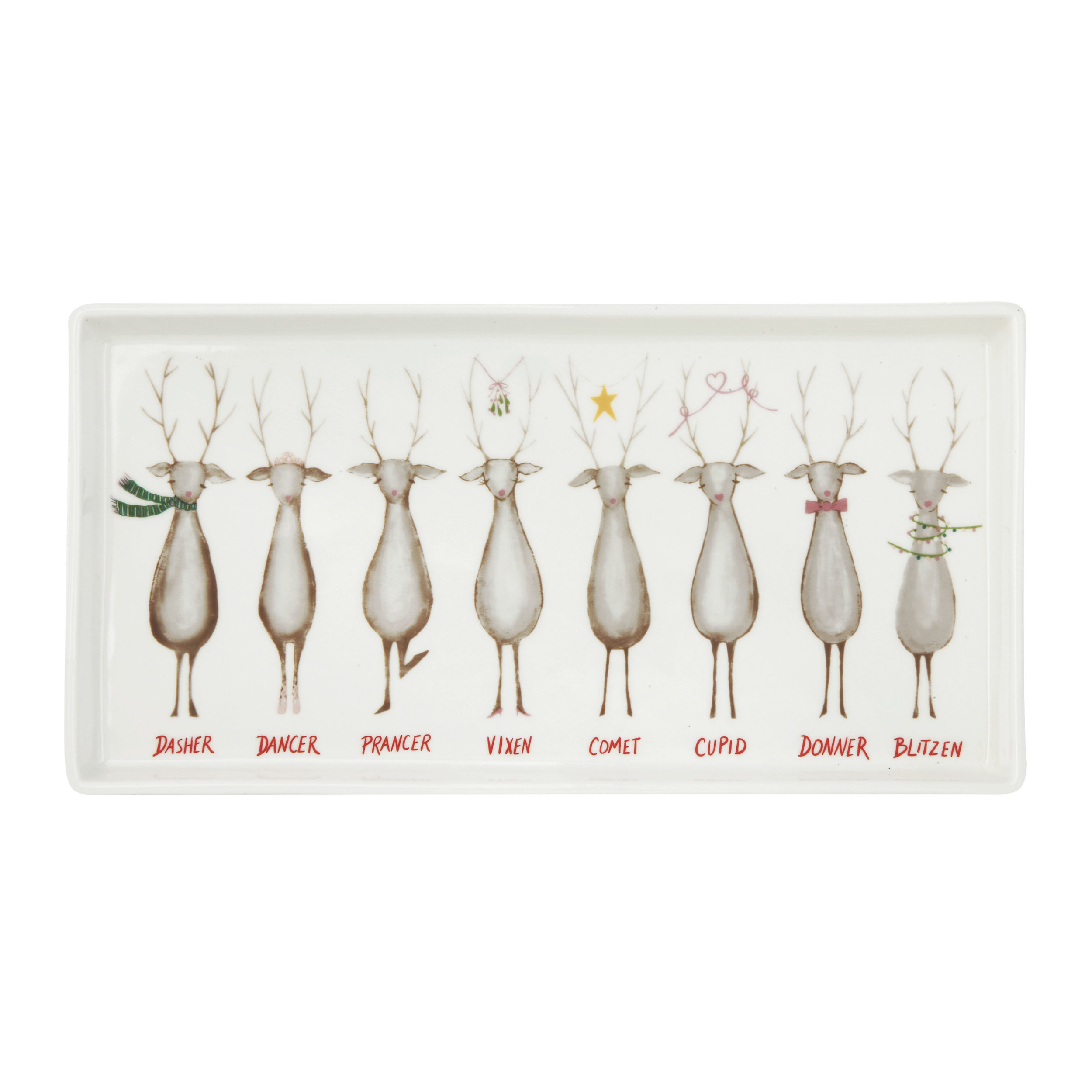 Catalog Name: 12-3/4"L x 6-1/2"W Stoneware Platter w/ Santa's Reindeer, Multi Color ©