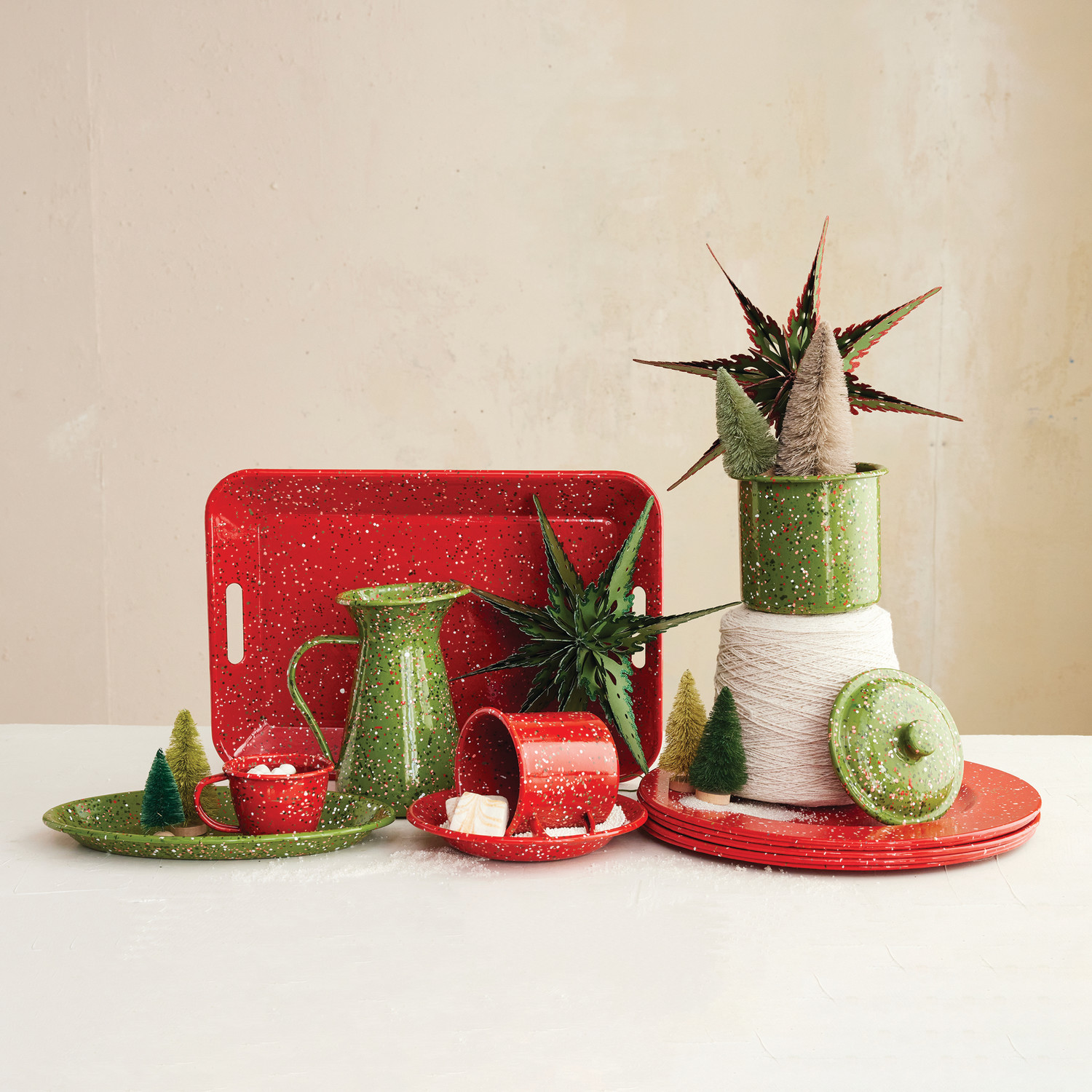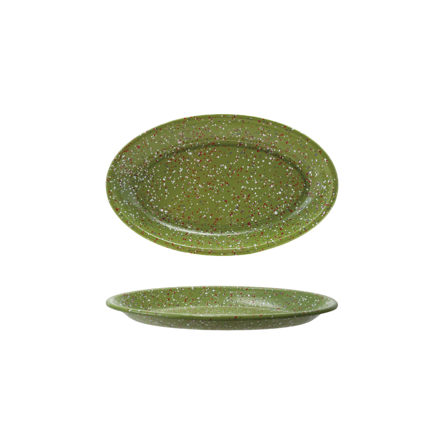 Catalog Name: 11-1/4"L x 7"W Oval Enameled Metal Splatterware Plate, Green
