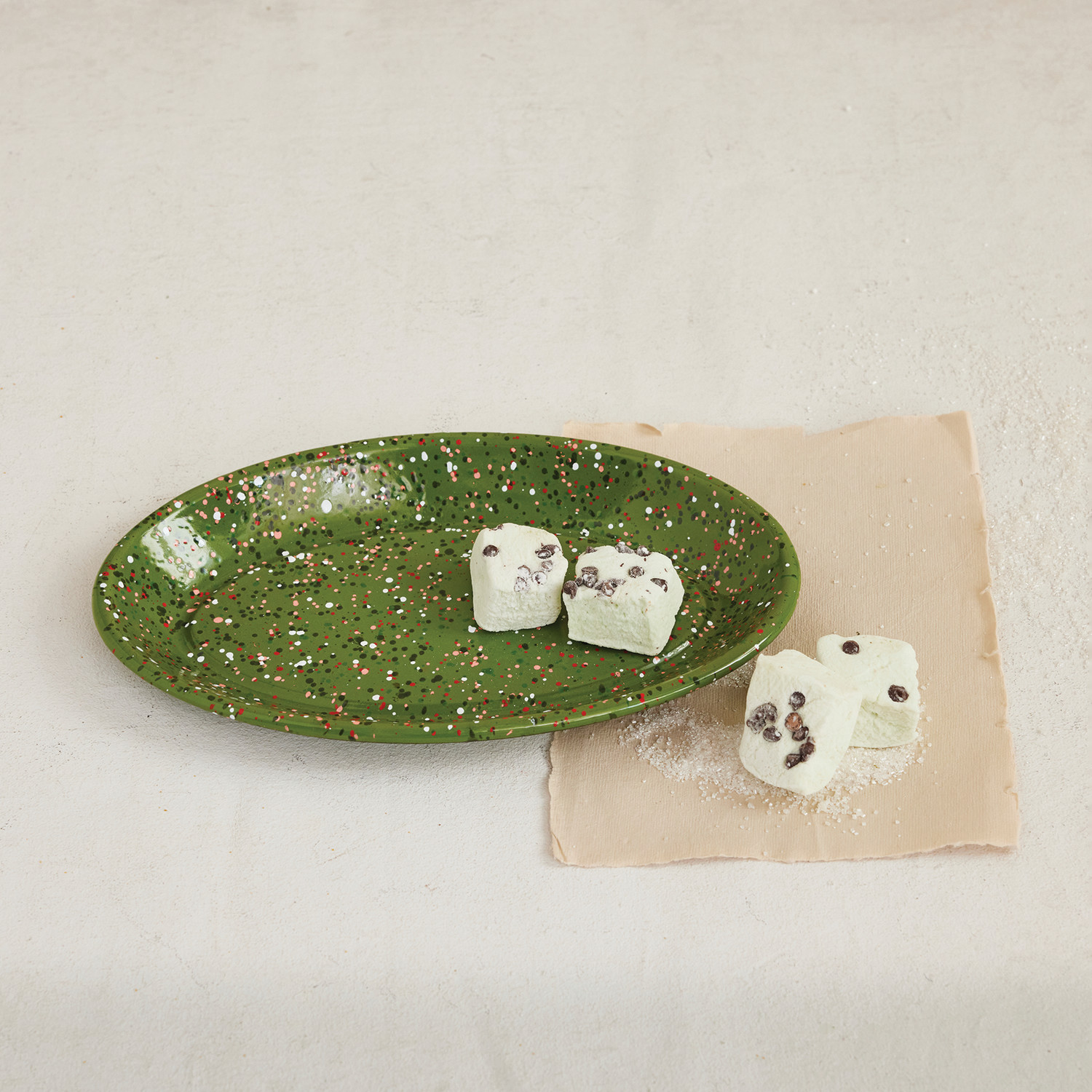 11-1/4"L x 7"W Oval Enameled Metal Splatterware Plate, Green