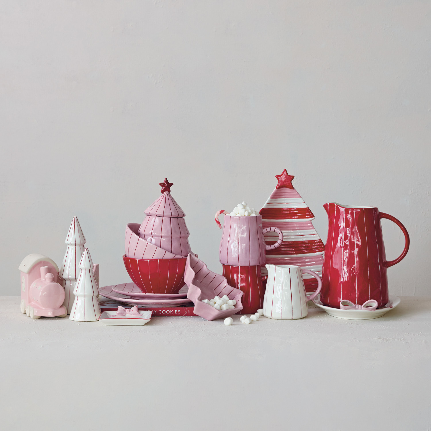 Catalog Name: 8" Round Hand-Painted Stoneware Striped Organic Shaped Plate, Pink & Red