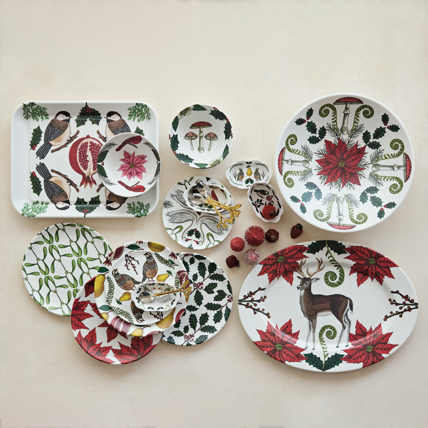 Melamine Serving Bowl with Seasonal Botanicals, Matte Finish ©