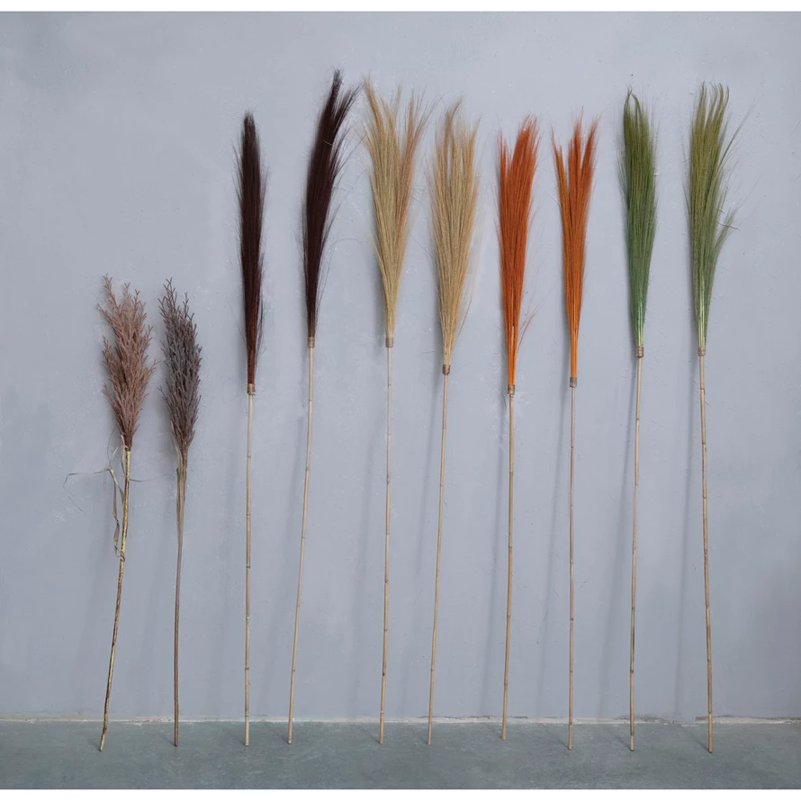 Catalog Name: Approximately 78"H Dried Natural Tiger Grass on Bamboo Pole, Moss Color