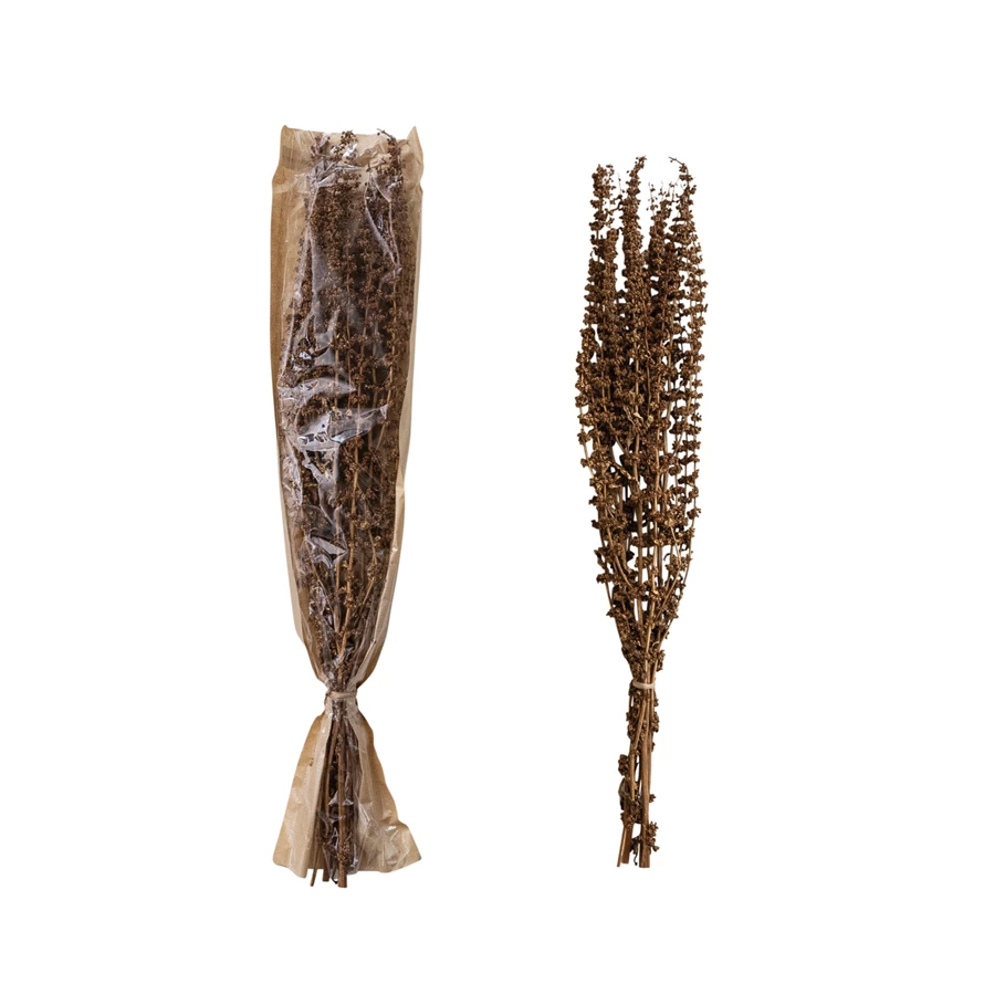 Catalog Name: 23-1/2"H Dried Natural Spinach Flower Bunch, Gold Color (Contains 5 Pieces)