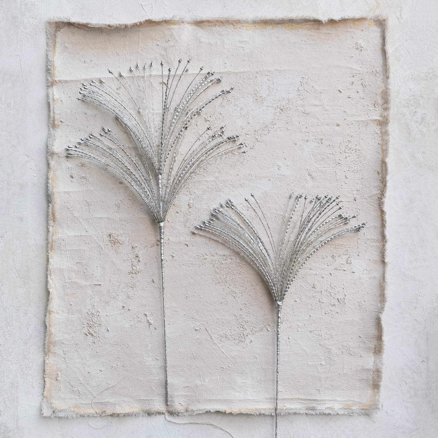 This metal and glass beaded spray is a lively and sparkling piece that will enhance any space. The spray features metal, glass, and acrylic beads that have a silver finish and a soft texture, creating a chic and elegant effect. The spray also has an organic shape that gives it a natural and whimsical appeal, creating contrast and balance. The spray is made of metal, glass beads, and acrylic beads, with a durable and smooth quality. It is easy to clean and maintain. The spray measures 15 inches in length, 15 inches in width, and 22 inches in height. The spray is a versatile and stylish piece that can be placed in a vase, basket, or wall, or for making a wreath or bouquet. It is a perfect addition to any space that needs some glamour and shine. A lively and sparkling metal and glass beaded sprays with a silver finish and an organic shape. A perfect addition to any space that needs some glamour and shine. Ideal for placing in the vase, basket, or wall, or for making a wreath or bouquet.
