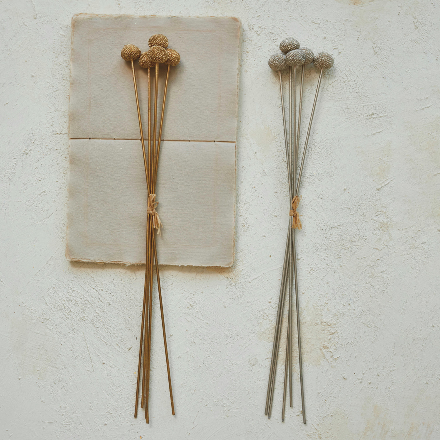 Catalog Name: 23"H Faux Pom Pom Flower Bunch, Silver Finish (Contains 5 Pieces)
