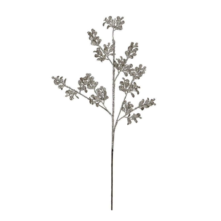 Catalog Name: 27-1/2"H Faux Leaf Pick w/ Glitter, Champagne Color