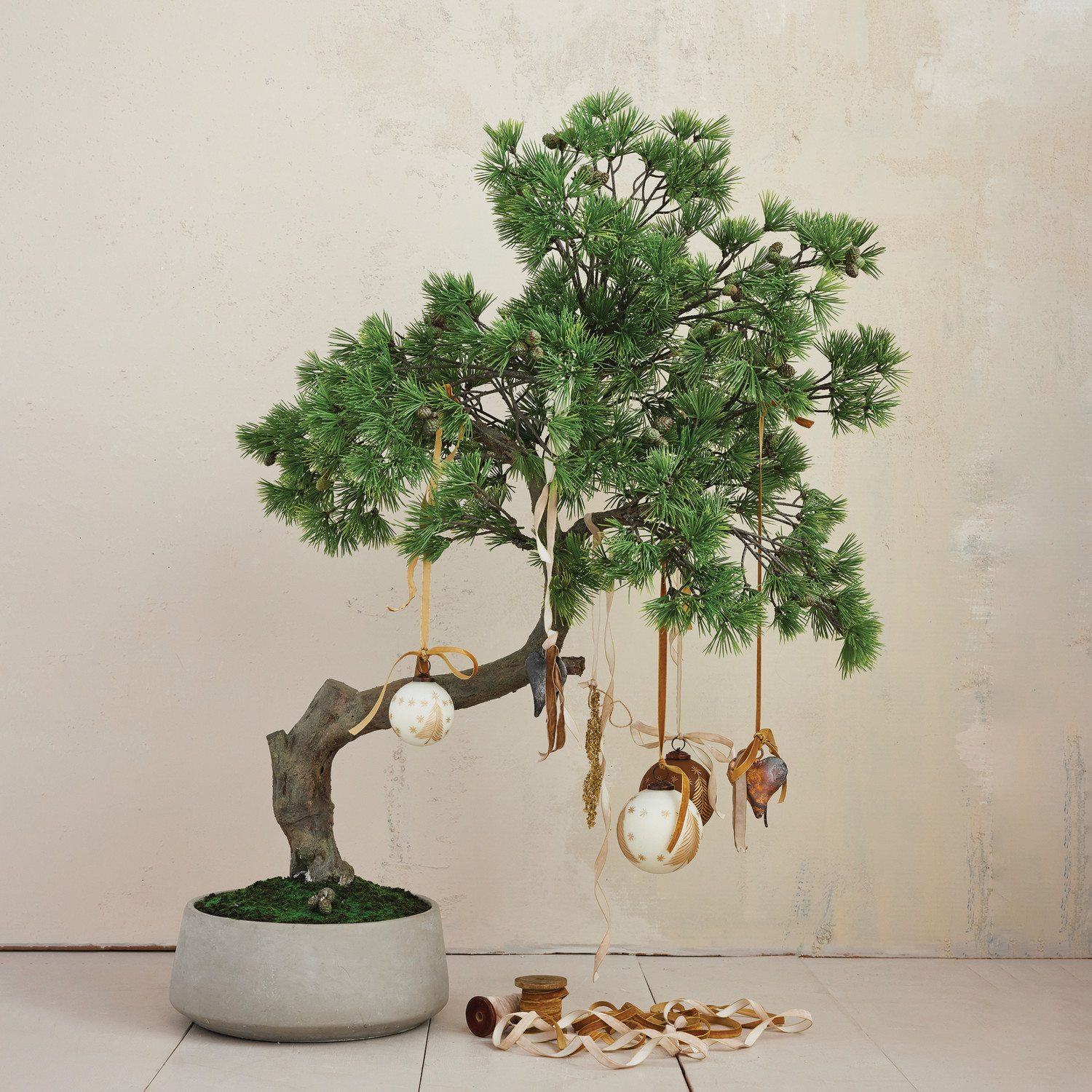 Catalog Name: 31-1/2" Round x 41-1/4"H Faux Bonsai Pine Tree in Ceramic Pot, Truck Ship