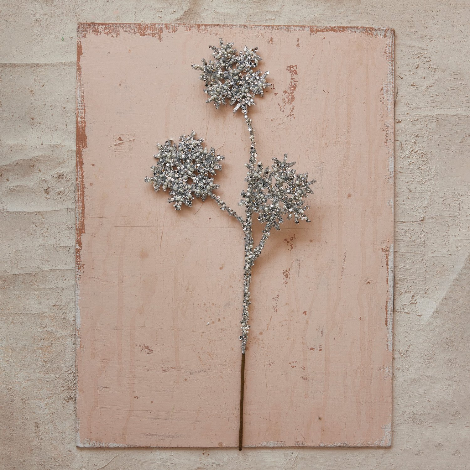 Catalog Name: 23-1/2"H Plastic Snowflake Stem w/ Faux Pearls & Glitter, Ice Finish & Silver Finish