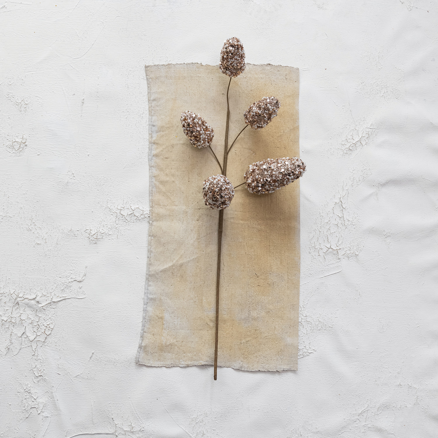 Foam Pinecone Stem with Faux Pearls, Ice Finish, Rose Gold Color