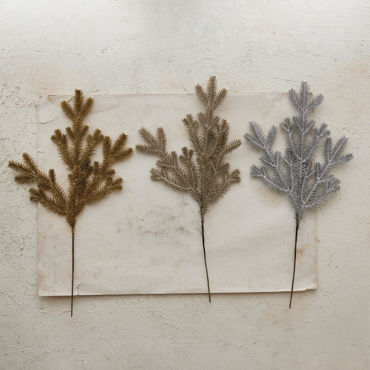 20-1/2"H Faux Pine Stem with Glitter, Gold Finish