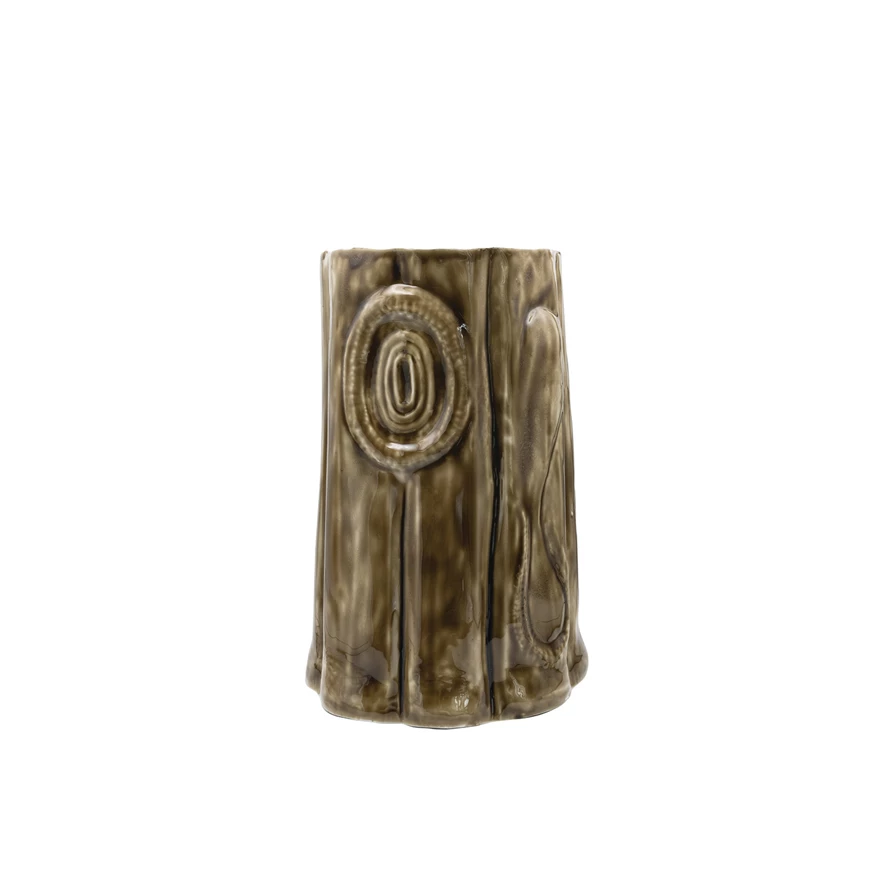 11" Round x 16"H Enameled Metal Log Shaped Table/Stool, Brown