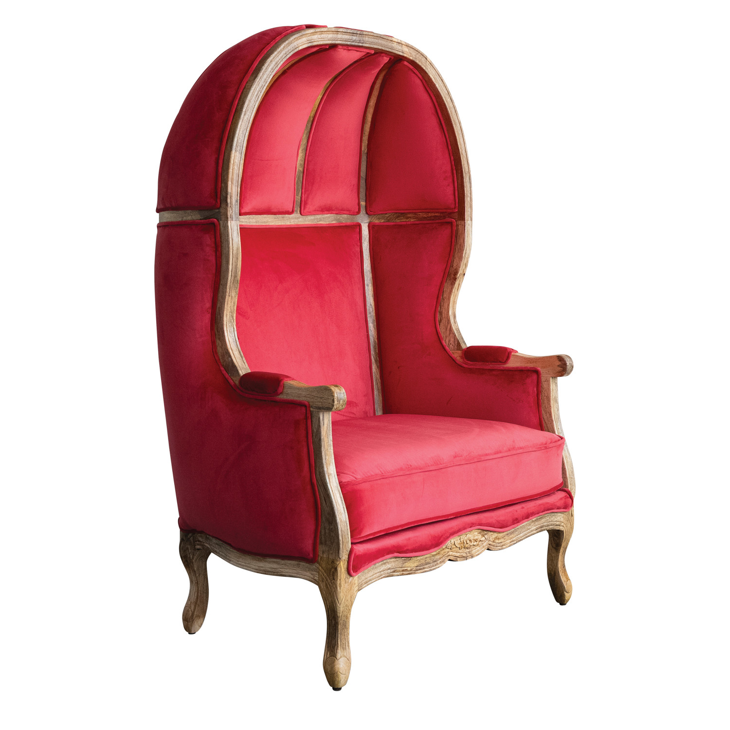 Catalog Name: 41"W x 31"D x 62"H Velvet Upholstered Balloon Chair w/ Hand-Carved Mango Wood Frame, Berry Color & Natural, Truck Ship