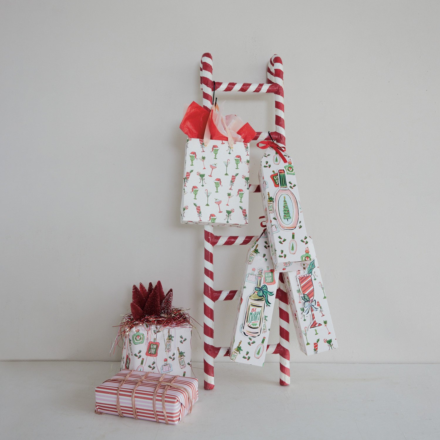 Decorative Paper Mache & Metal Ladder with Candy Stripes, Red & White