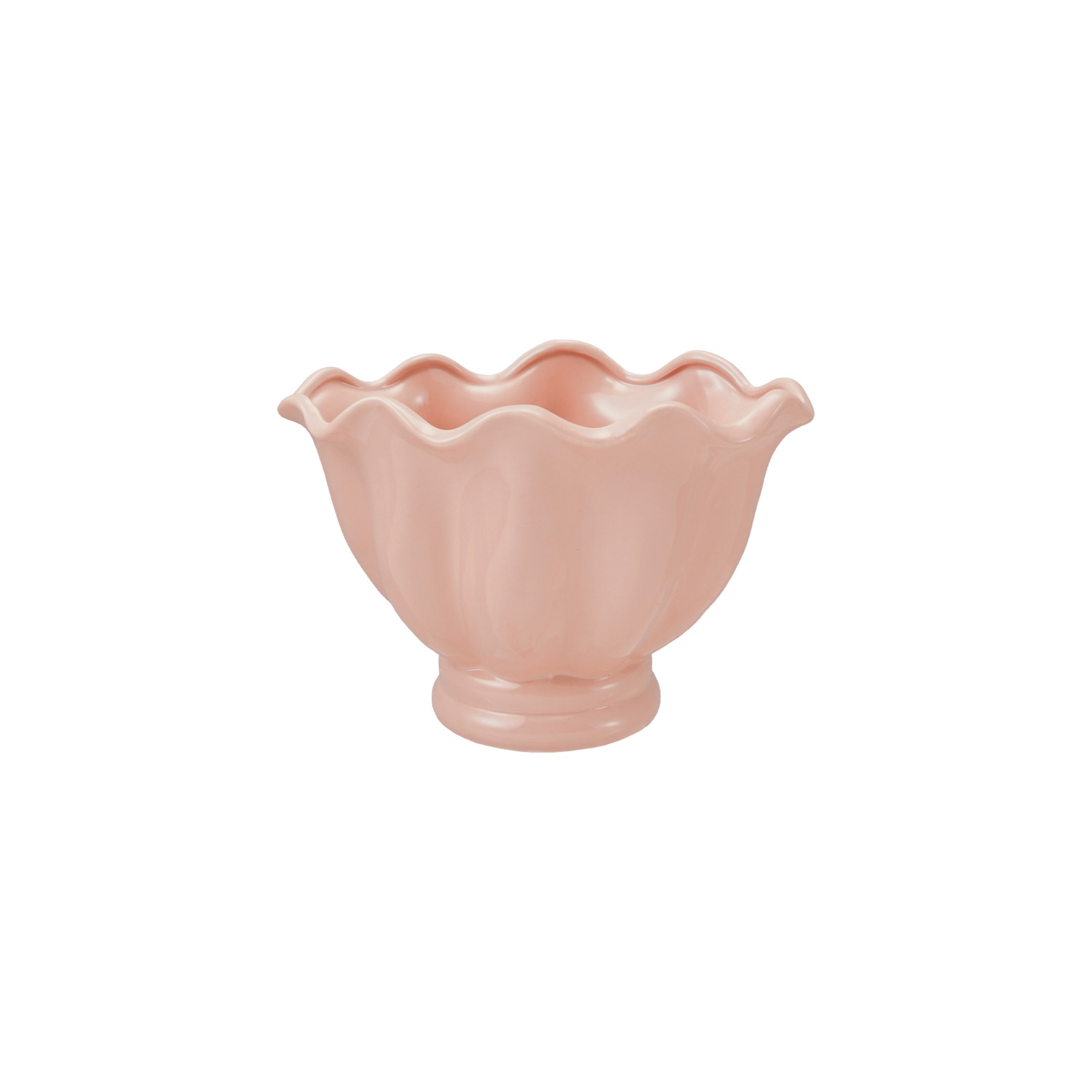 Catalog Name: 9-1/2”L x 6-1/4”W x 6-1/4”H Stoneware Vintage Reproduction Ruffled Footed Container, Pink