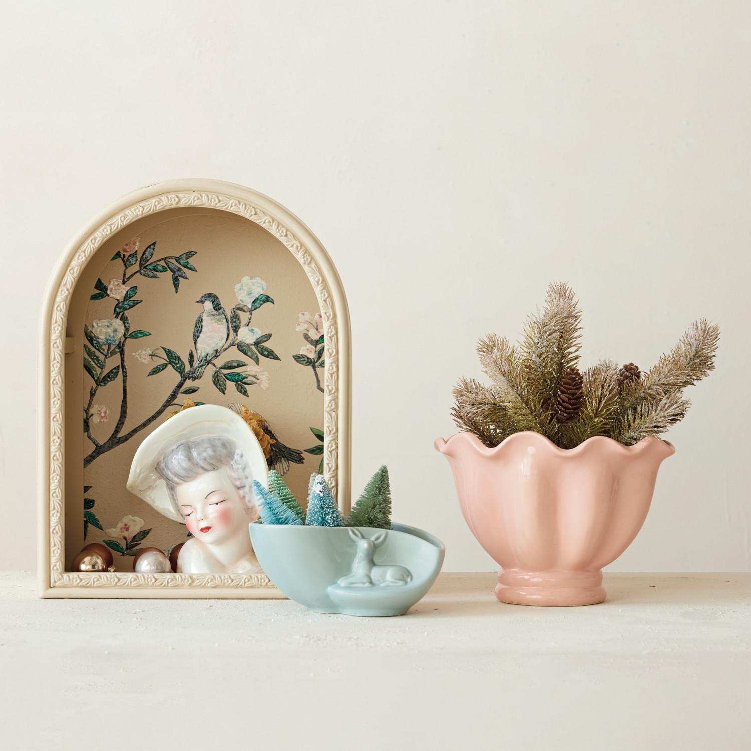 Stoneware Vintage Reproduction Ruffled Footed Container, Pink