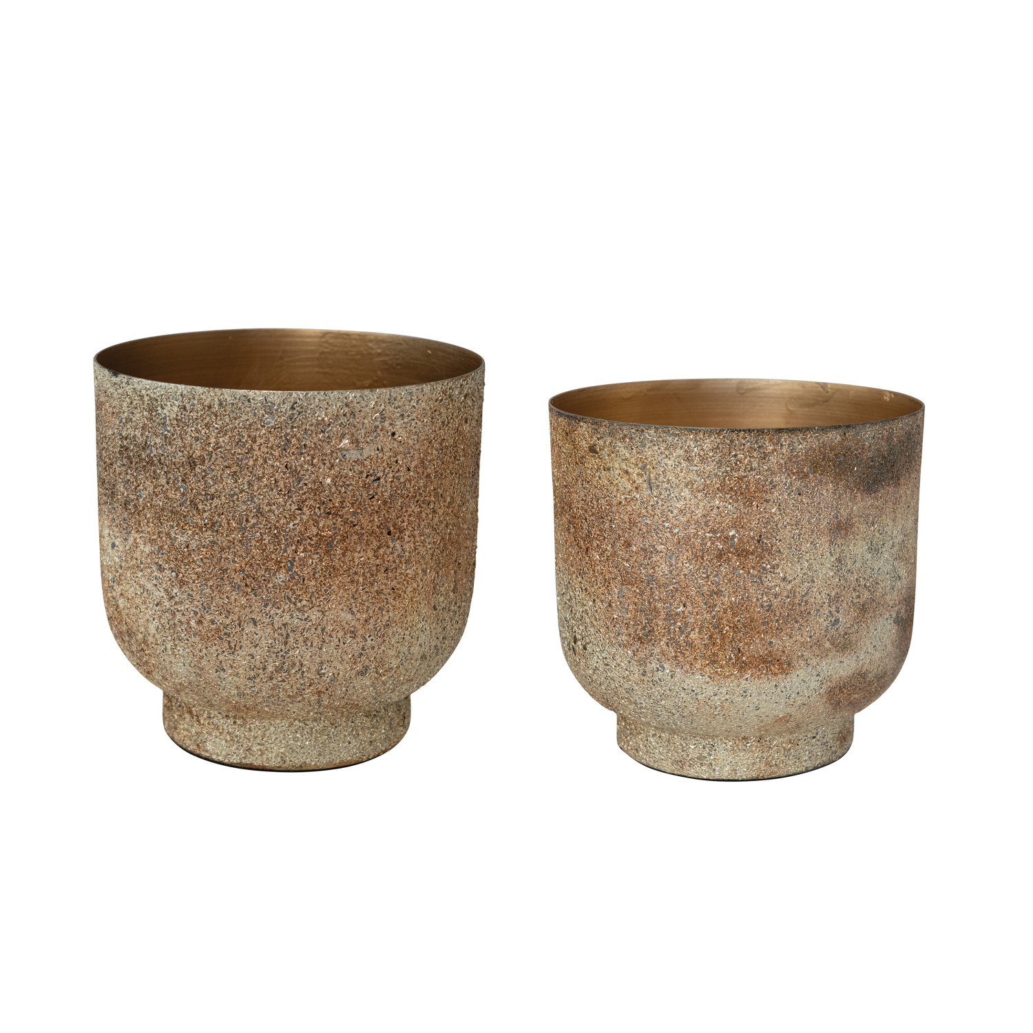 Catalog Name: 7" Round x 6-3/4"H & 6" Round x 6"H Metal Planters, Tarnished Silver Finish, Set of 2 (Holds 6" & 5" Pots)