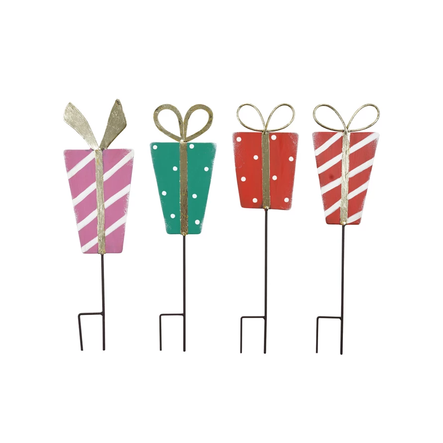 Catalog Name: 3-1/4"W x 12"H Metal Gift Shaped Stake, Multi Color, 4 Styles