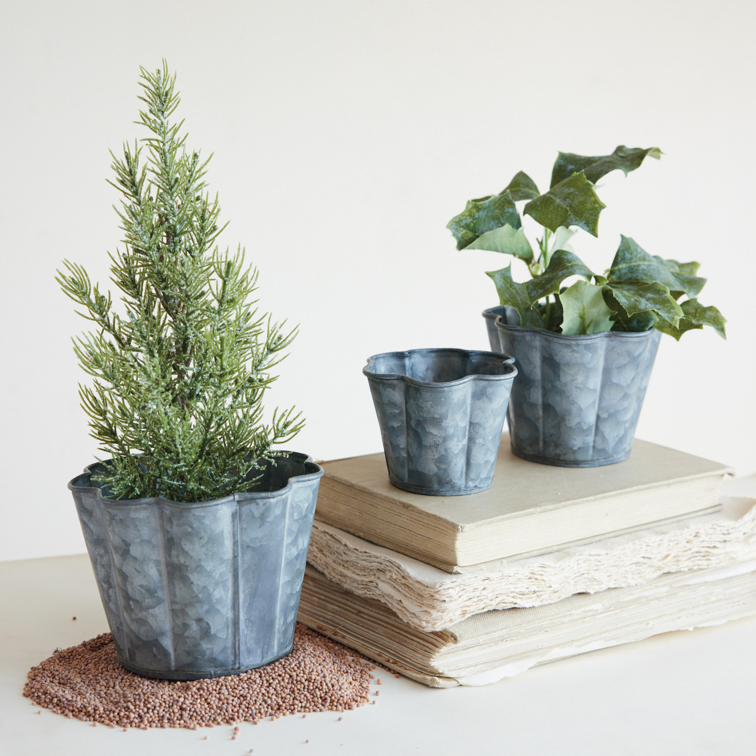 Catalog Name: 5-1/4" Round x 4"H, 4-1/4" Round x 3"H & 3-1/2" Round x 2-1/2"H Galvanized Metal Scalloped Planters, Set of 3