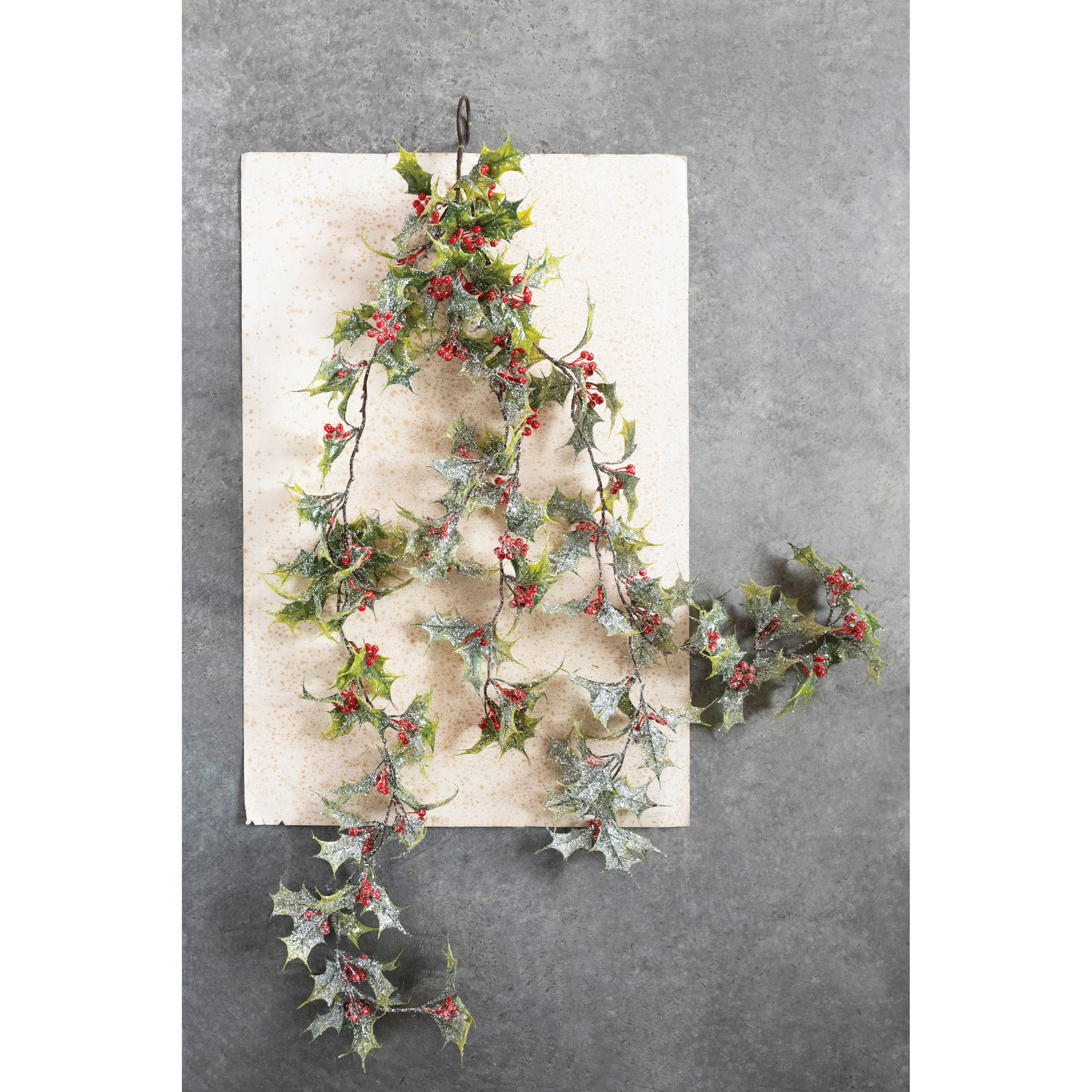 49"L Faux Holly Garland with Red Berries and Silver Glitter
