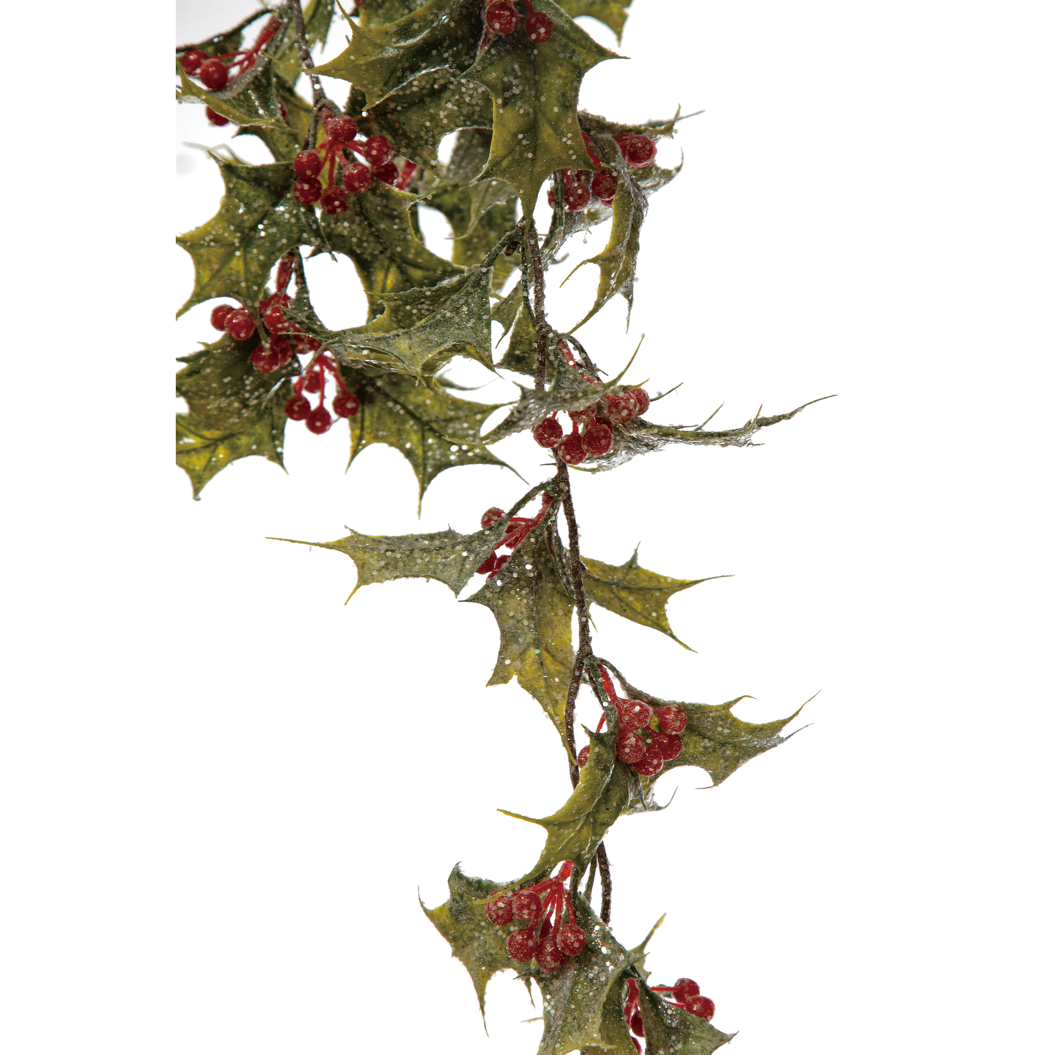 Catalog Name: 49"L Faux Holly Garland with Red Berries and Silver Glitter